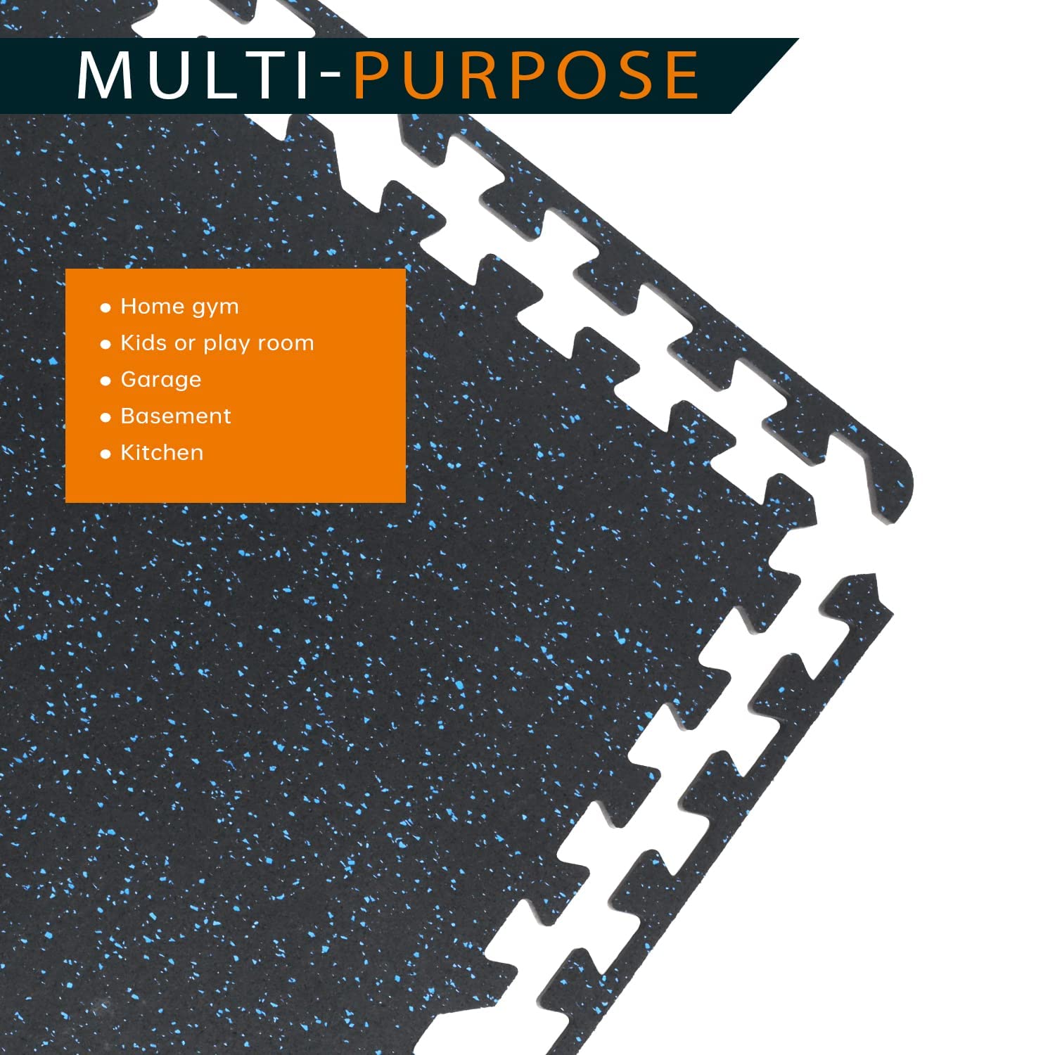 - Interlocking Puzzle Exercise Mats- Change Your Home to The Gym In Seconds: Each pack comes with 12 tiles(24' x 24' x0.56') and 24 borders to cover 48 square feet. Upgrade larger interlocking lock for grip together tightly. It was extremely easy to put together making a perfect workout and training space, just like being at the gym!