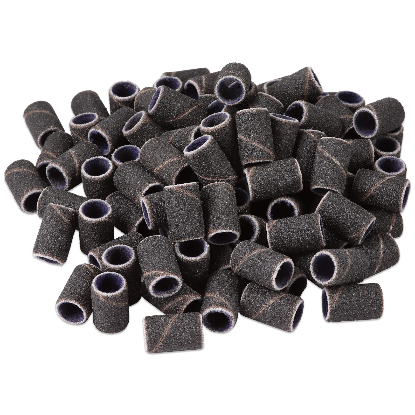 - [Design] These sanding bands are sized to perfectly fit common nail drills and have a coarse grit pattern that will provide an even finish for any manicure or pedicure. Attachment of these sanding bands is simple and hassle-free with each band holding firm onto drill bits. These items are available in Black with a grit of 120. Additionally, the items come in a small plastic storage case.