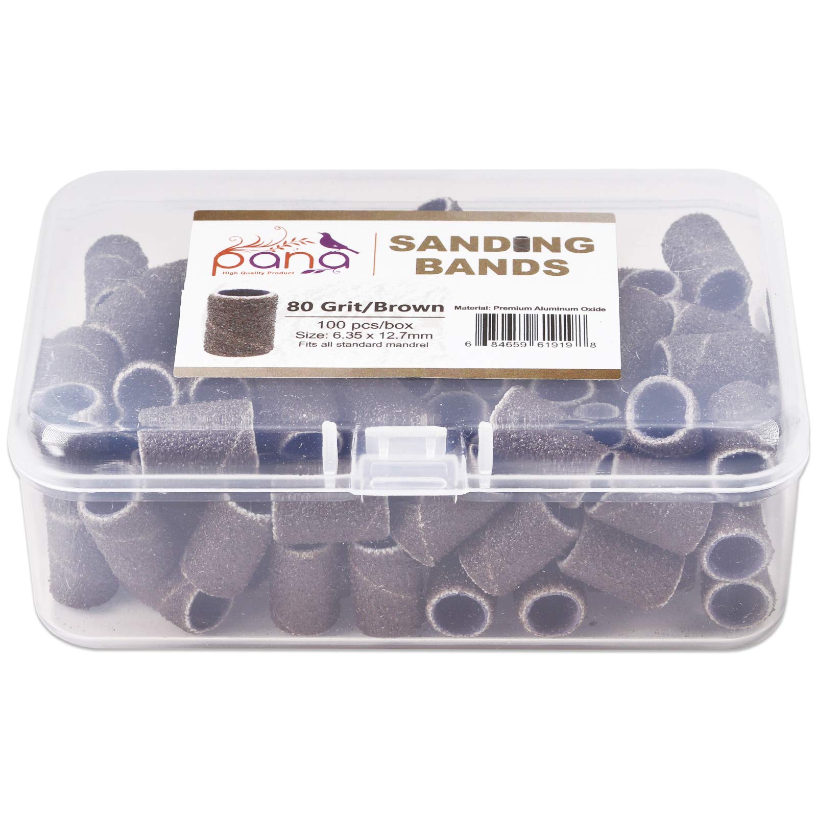 - [Design] These sanding bands fit common electronic nail drills and have a coarse grit that will provide a level finish to any manicure or pedicure. Convenient to use, these bands are easy to insert and will hold firm to drill bits. These items are available in Brown with a coarse grit of 80. Additonally, these items come in a small plastic storage container.