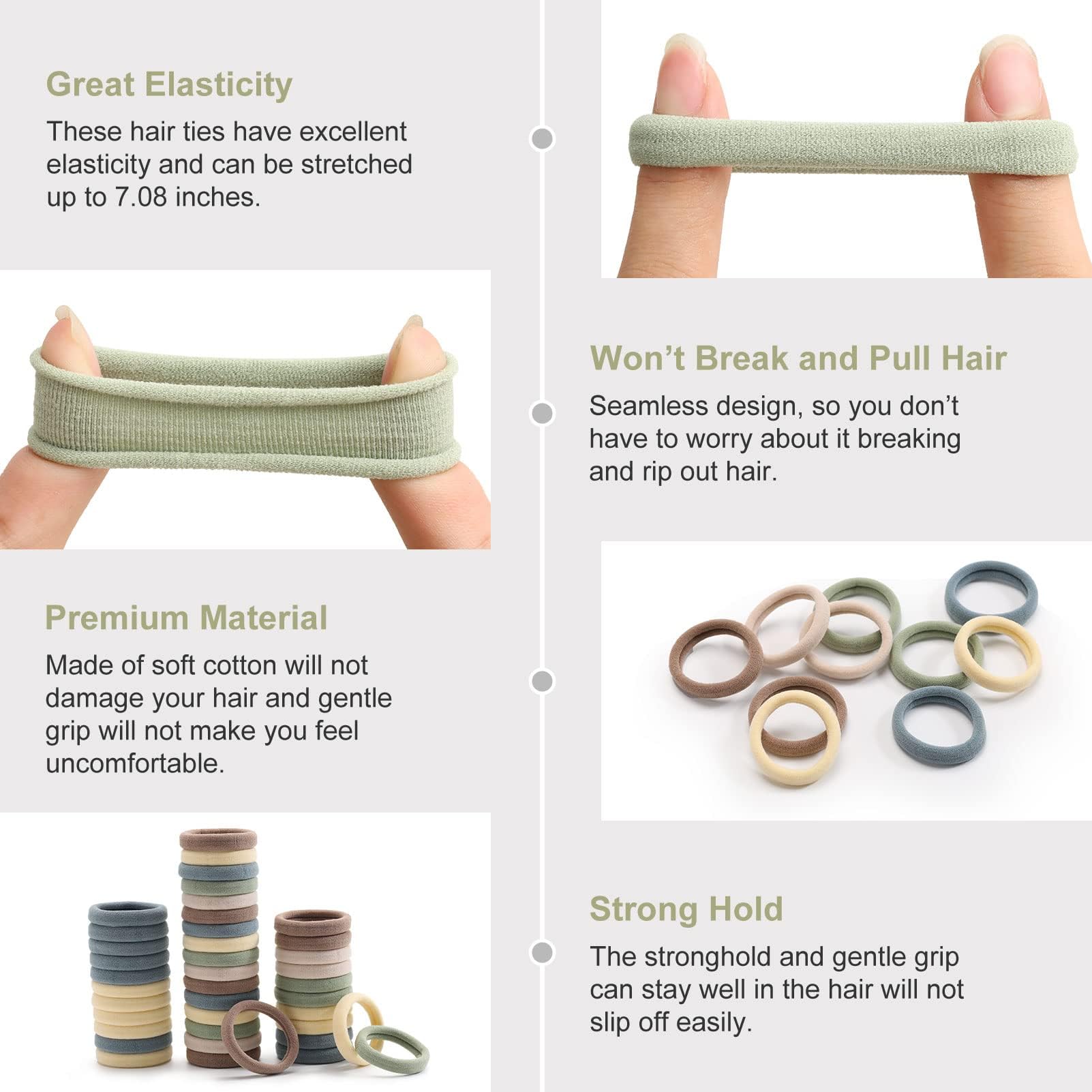 100 Pcs Thick Seamless Hair Ties, Ponytail Holders Hair Accessories No Damage for Thick Hair (Light Theme Colors)