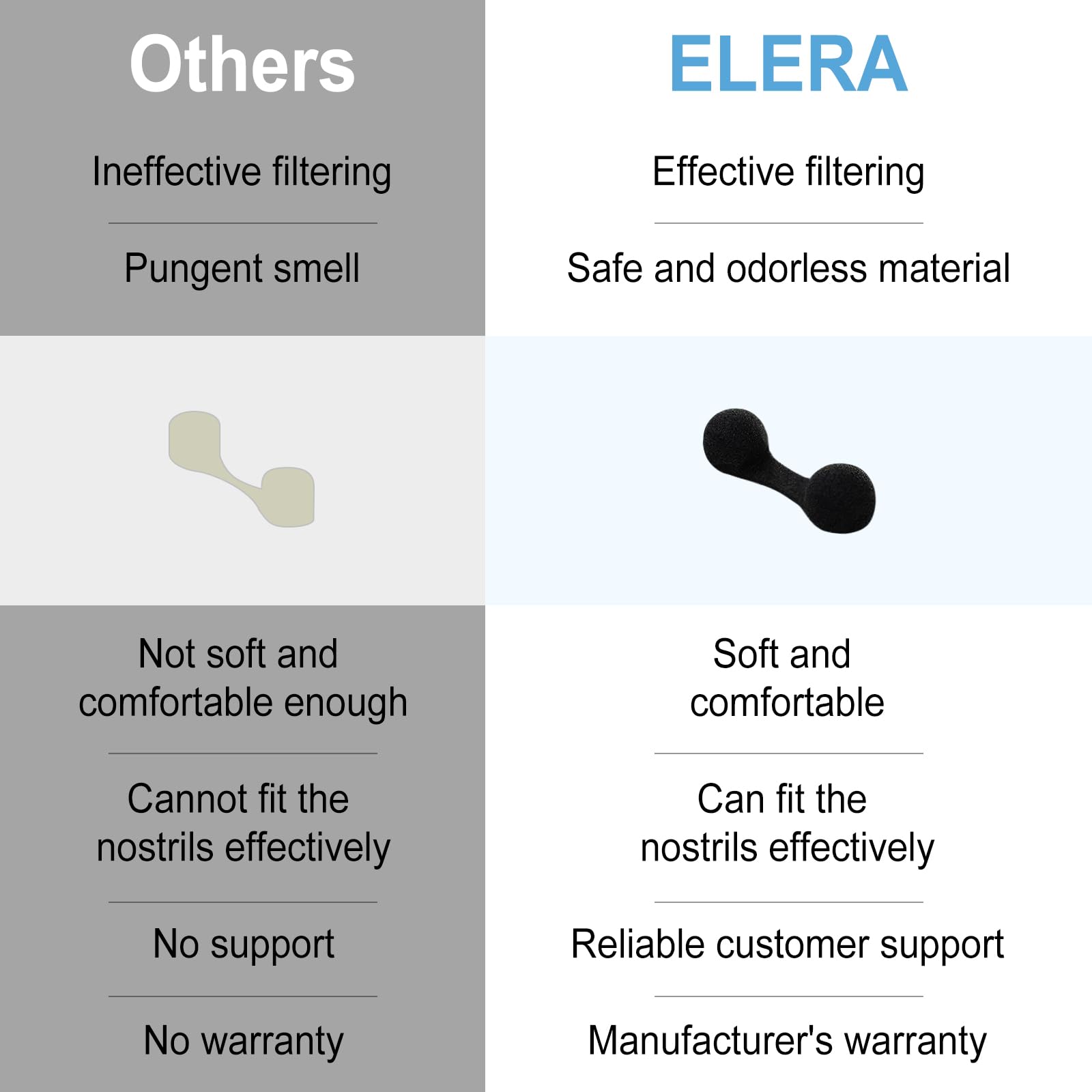 - WIDELY APPLIED - ELERA nose filters can be used to care nasal cavity,anti allergy and dust,alleviate odor discomfort.When make up and skin care at home or beauty Salon,especially suitable for clients and technicians to use when spray tanning sunscreen spray or black spray.Also a good choice if there have pets in the family.