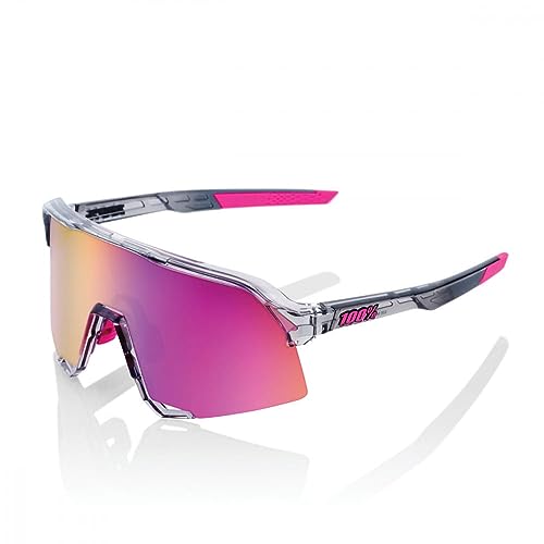 100% S3 Sport Performance Cycling Sunglasses (Polished Translucent Grey - Purple Multilayer Mirror Lens)