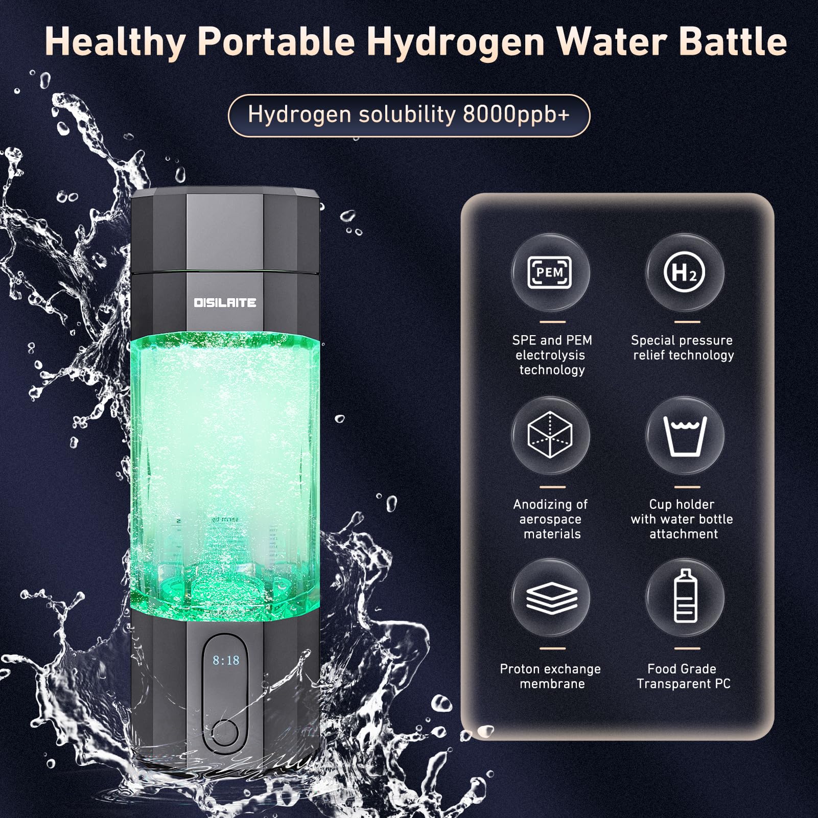 - Advanced Technology: DISILAITE hydrogen water bottle adopts SPE and PEM technology, special physical electrolysis technology, which can generate clean and high concentration hydrogen. And platinum has been added on both sides of the proton membrane, which make the water cup safer.Original imported proton membrane, technology originated from Japan but excceed Japan technology