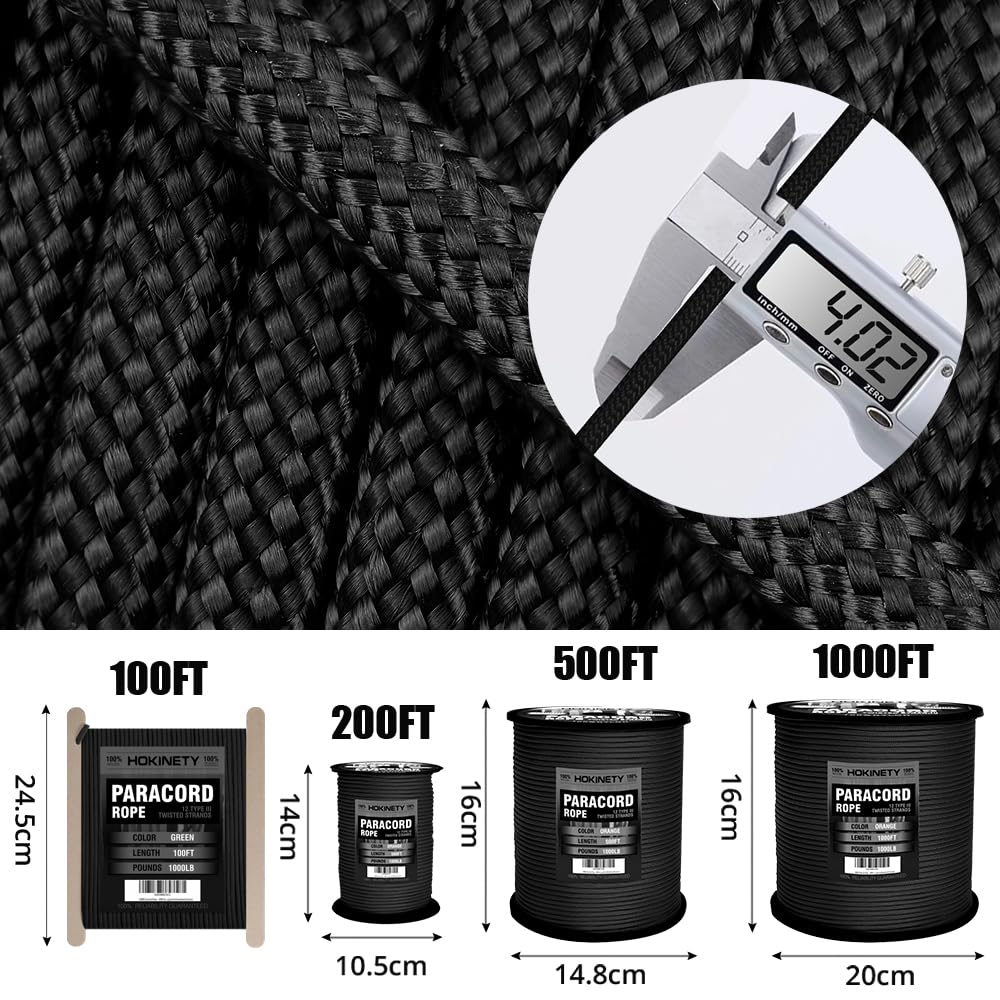1000Ib Paracord Rope - 100ft / 200ft / 500ft / 1000ft 4mm,12 Strand Parachute Spool Cord,para Cord Lanyard for Camping,Hammock,Clothsline,Hiking,Fishing,Survival braceletand Survival