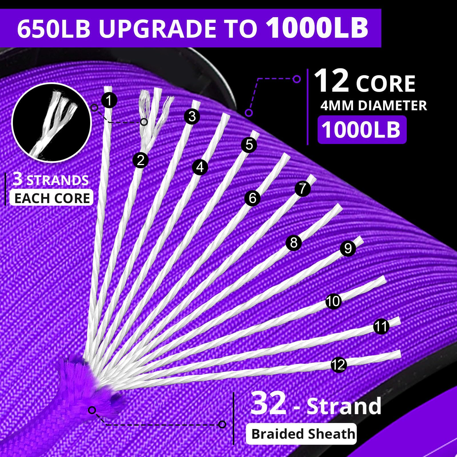1000Ib Paracord Rope - 100ft / 200ft / 500ft / 1000ft 4mm,12 Strand Parachute Spool Cord,para Cord Lanyard for Camping,Hammock,Clothsline,Hiking,Fishing,Survival braceletand Survival