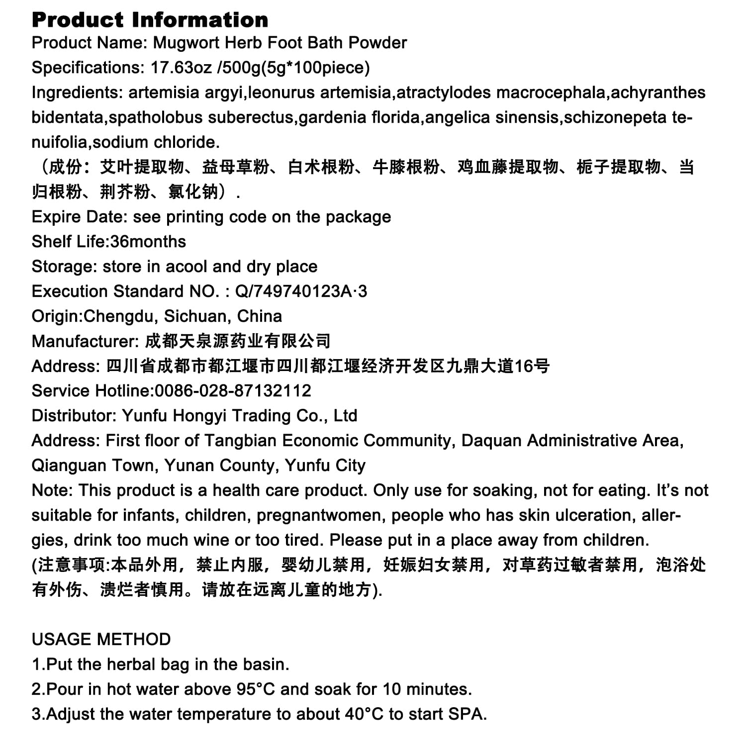 - There are 100pcs(5g per bag) wormwood foot bath bag in a packet, suggest 2-3 bags each time.