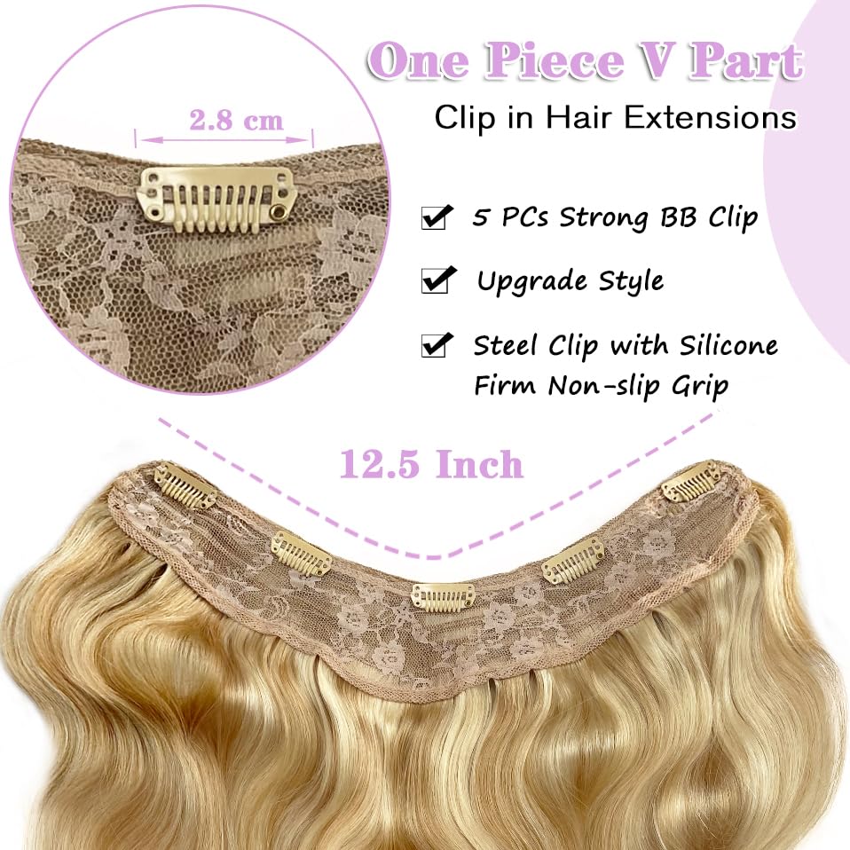 - 【Secure & 10A Grade Hair】The Clips On The Extensions Are Durable And Reusable.5 Clips Sew On The Weft Will Keep The Hair Extensions Stay In Place, Thicker And V Shape Design Allows The Extension To Lie Smooth And Flat On The Head Like A Secret Headband.We Adopt Advanced Sewing Technology, Less Shedding And Tangling, Full From Top To The End Which Will Make You More Charming And Elegant.100% Real Human Hair Grade 10A, Can Be Dyed,Curled,Straightened,And Washed.