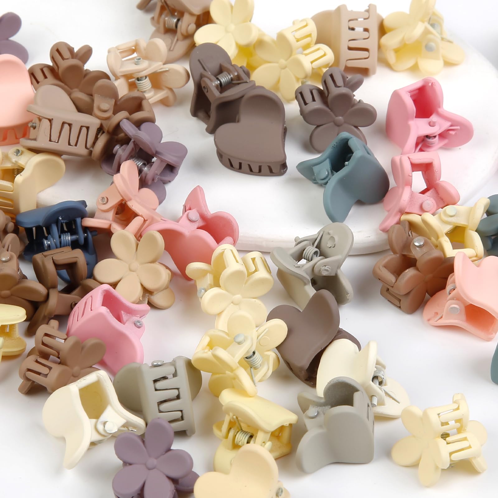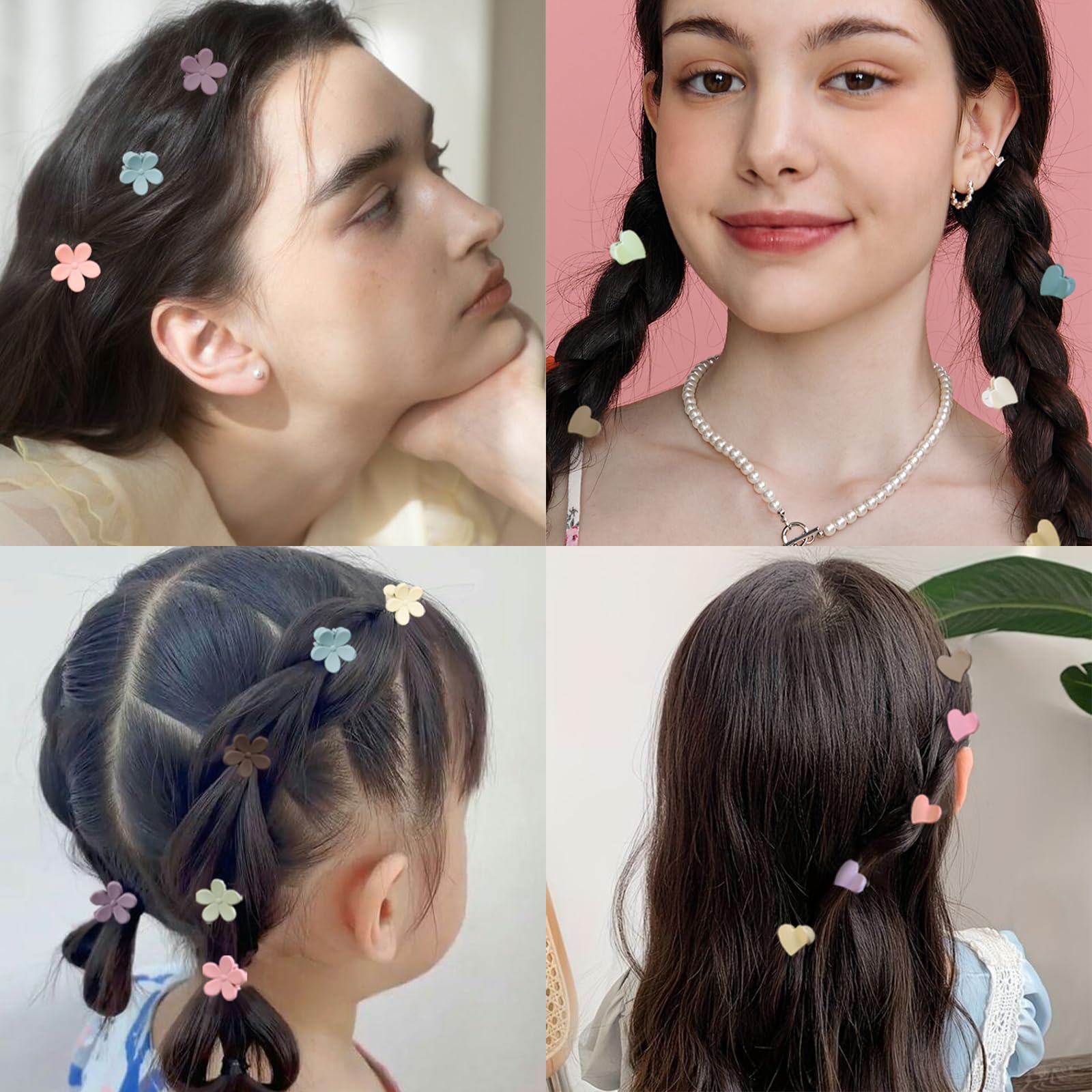 100Pcs Colorful Mini Flower Hair Clips Set, TEBIEKOY Small Hair Clips Mini Heart Hair Claw Clip Cute Jaw Clips Hair Pins Hair Barrettes Tiny Flower Hair Accessories for Women