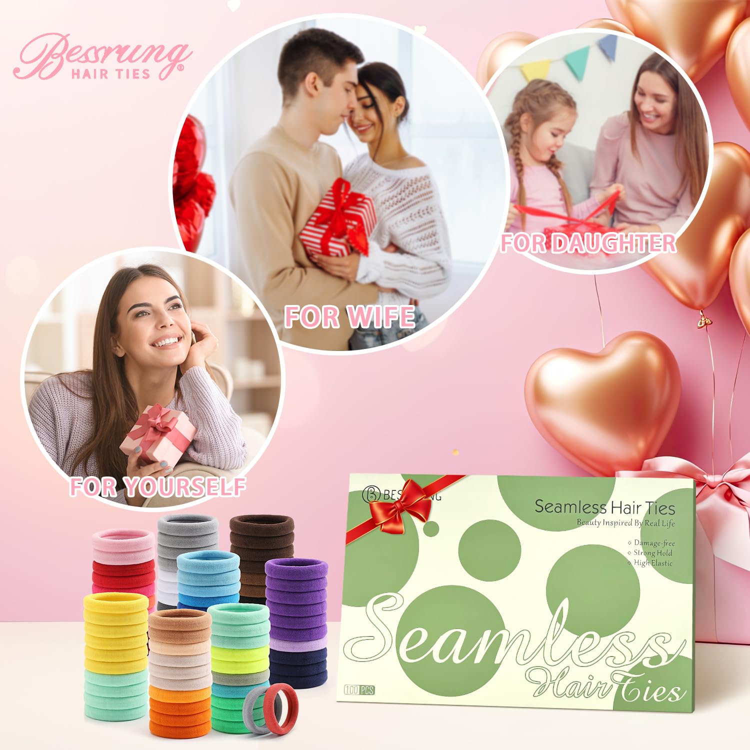 100PCS Elastic Hair Ties, Seamless Hair Band, Ponytail Holder No Crease Damage, Cotton Bands, Hair Scrunchies for Thick Thin Hair, Hair Accessories for Women