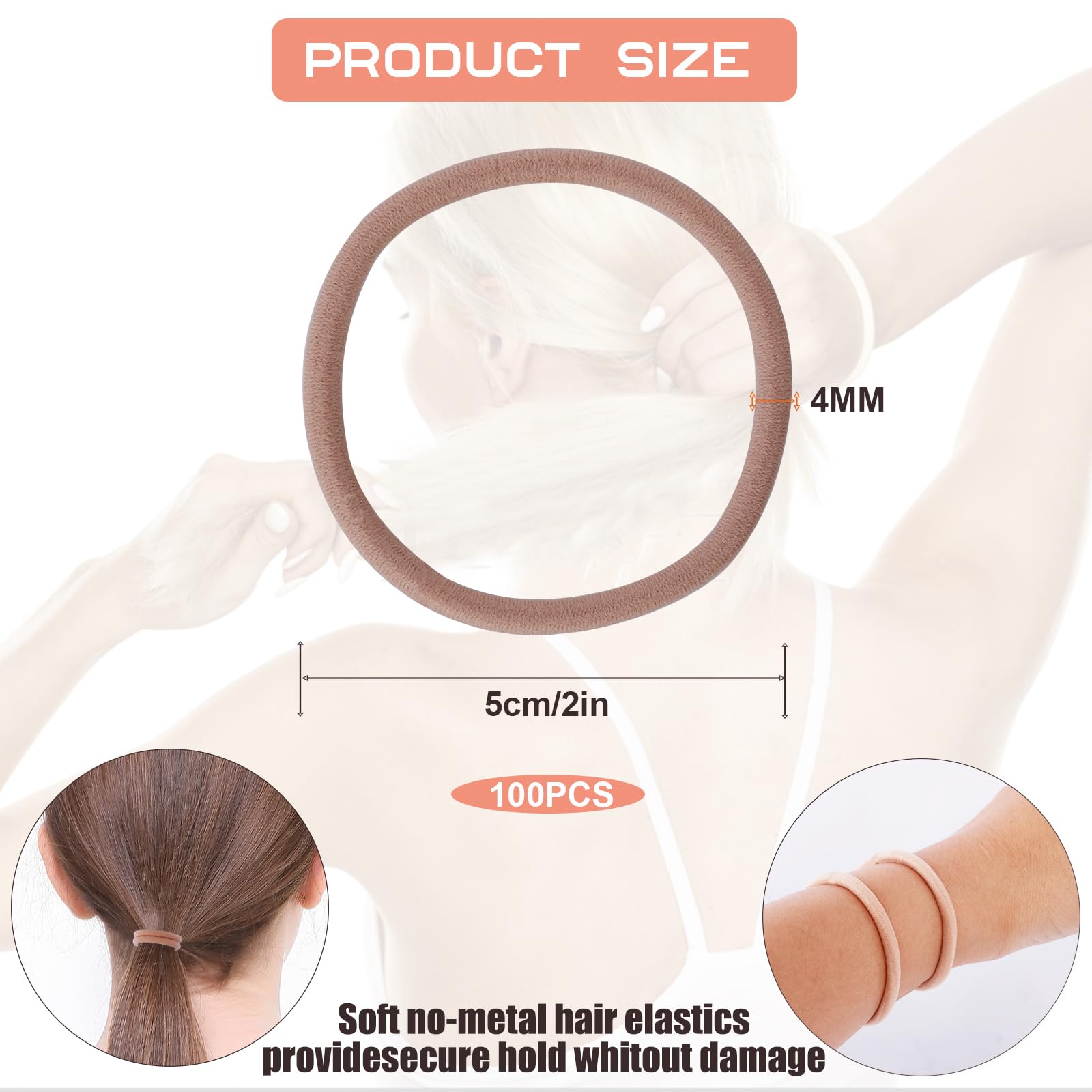 100PCS Hair Tie, 4MM Elastic Hair Ties No Damage Ponytail Holder for Women, Men and Girls (4mm Beige Blonde)
