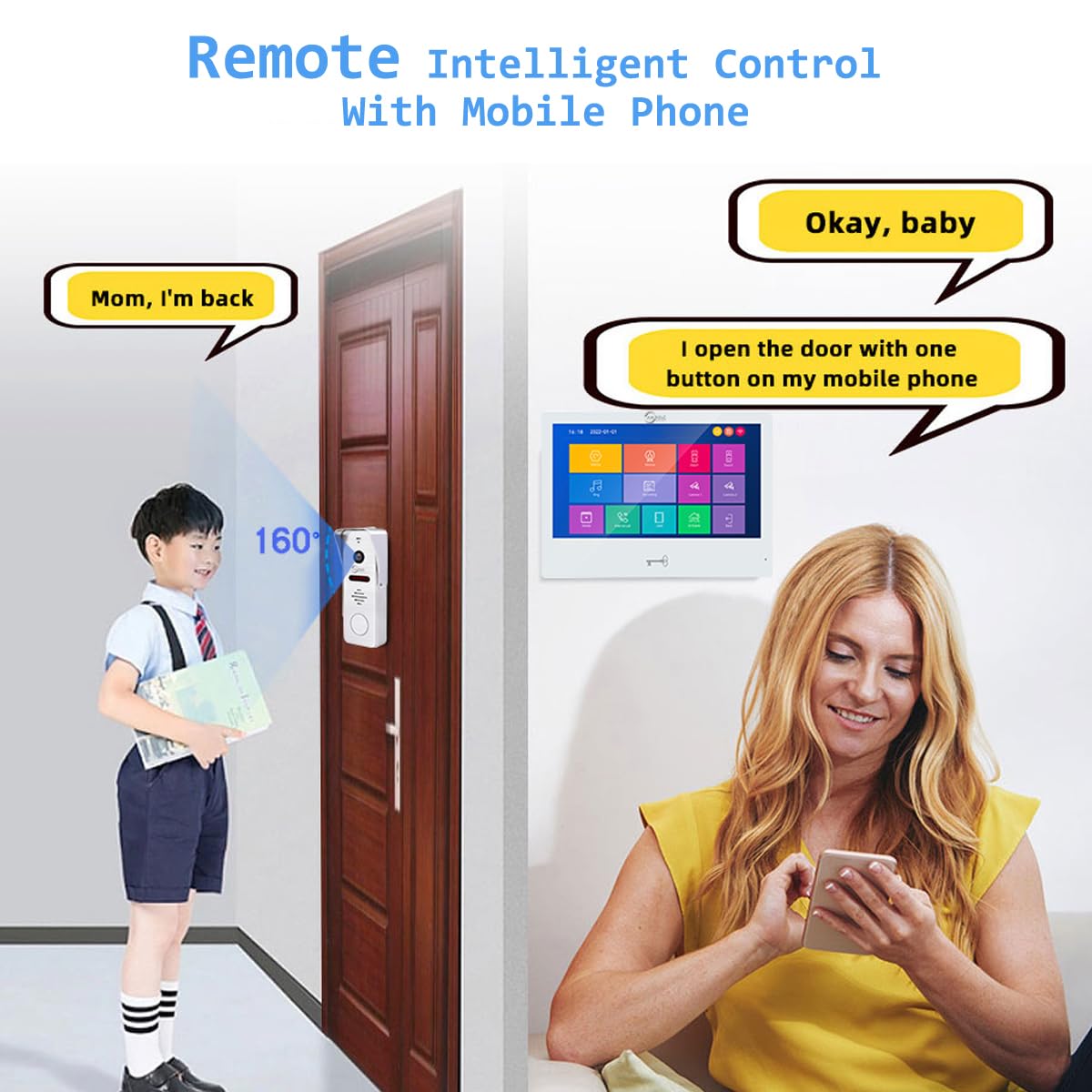 - Wifi Connection and Unlocking: Please note that the WIFI visual intercom system does not mean that you do not need any cables. You will need wiring between the monitor and the doorbell for more stability. Our device can connect to all 12V electronic locks. Unlocking supports TUYA APP, monitor. No matter where you are, you can open the door anytime and anywhere by talking to the visitor or courier. Free your hands.