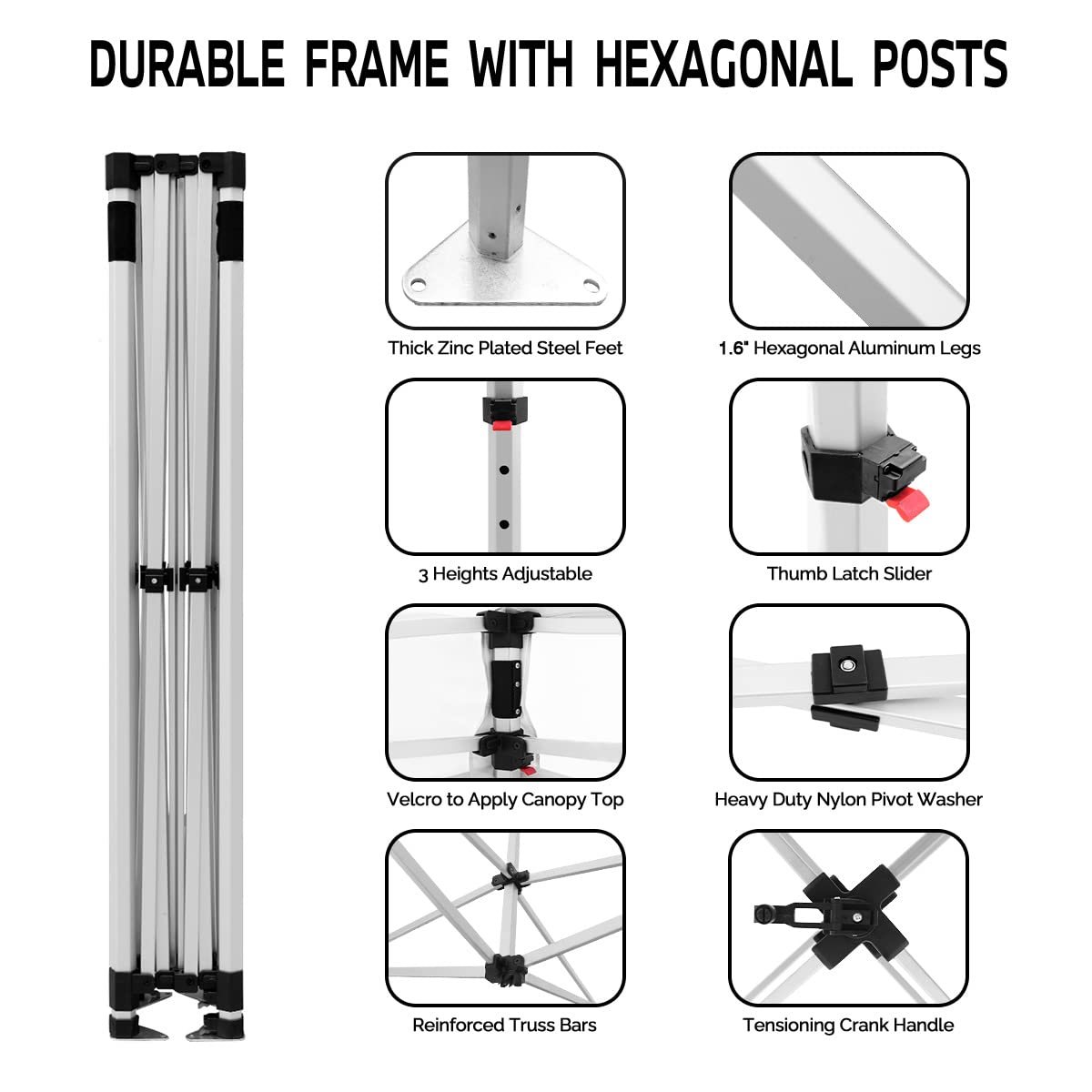 - YOUR PURCHASE IS COVERED - We are so confident about the quality of our instant canopy that we offer 3 years coverage for the frame and 1 year for the printed top. Contact us if you have any concern, we’ll get back to you in no time with readily understood answers and optimal solutions