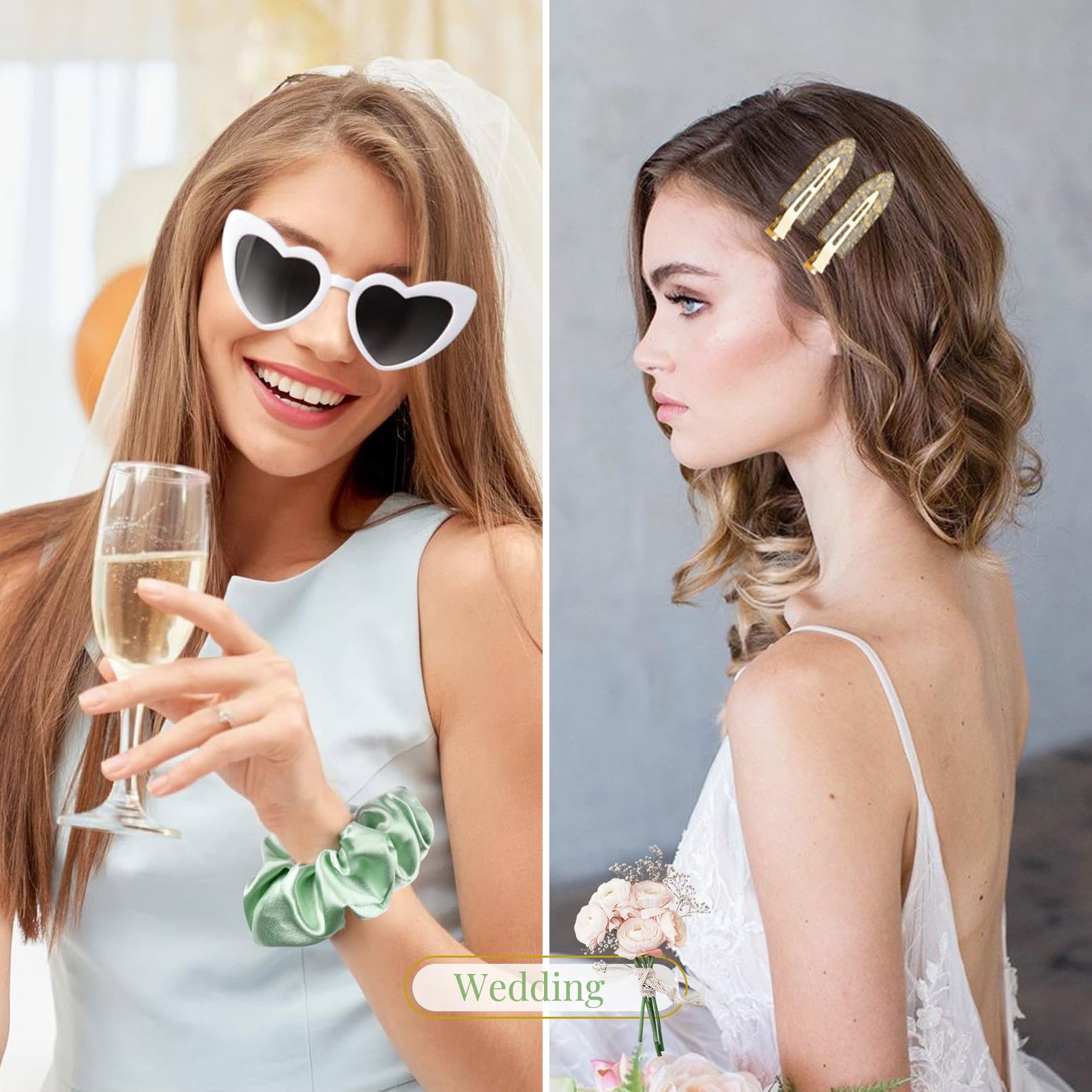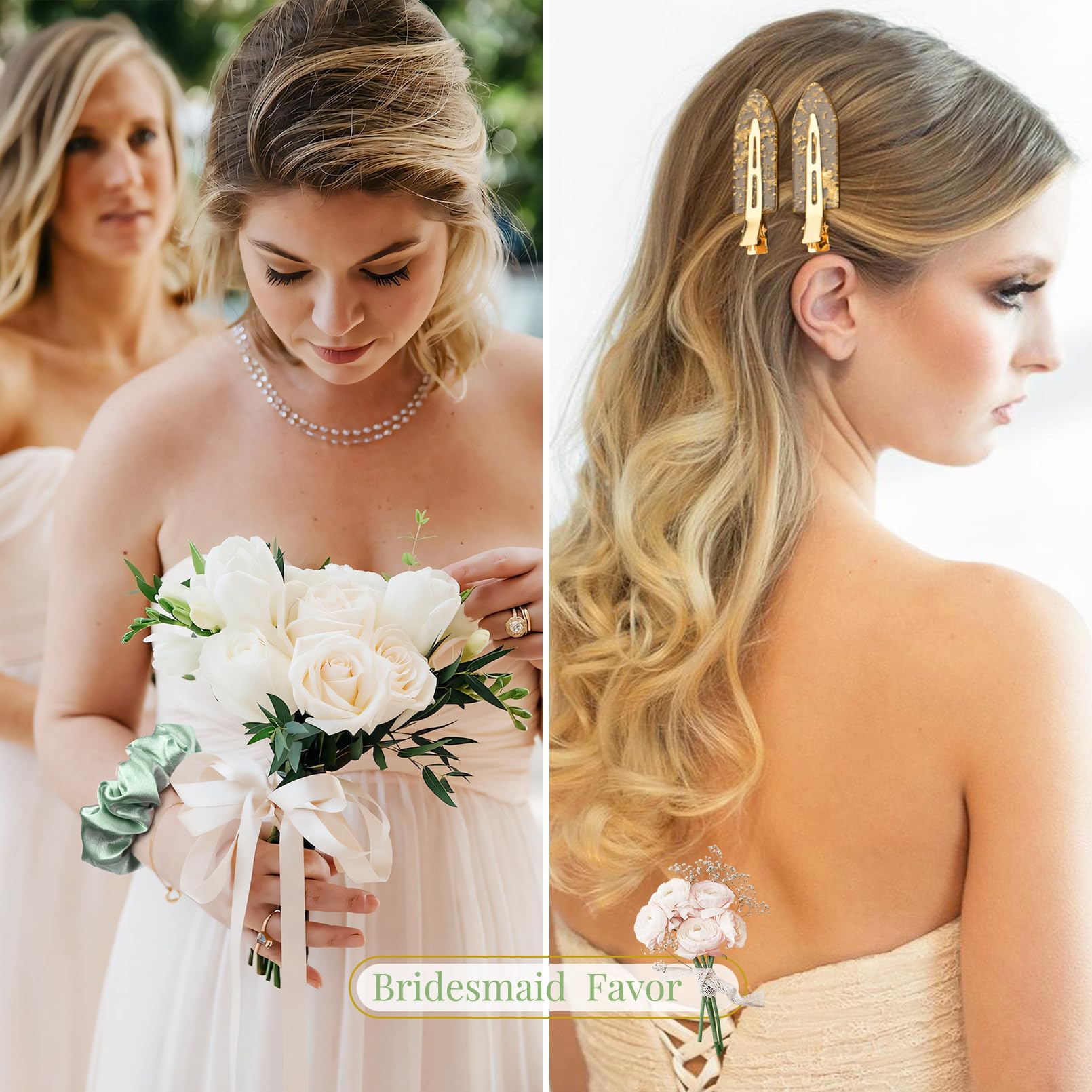- 💖Stylish and Elegant: These bridesmaid hair clips and hair scrunchies are specifically crafted for brides who desire a touch of elegance on their special day. The sleek and refined design of the clips effortlessly complements any bridal hairstyle, enhancing your overall appearance with a subtle yet glamorous charm.