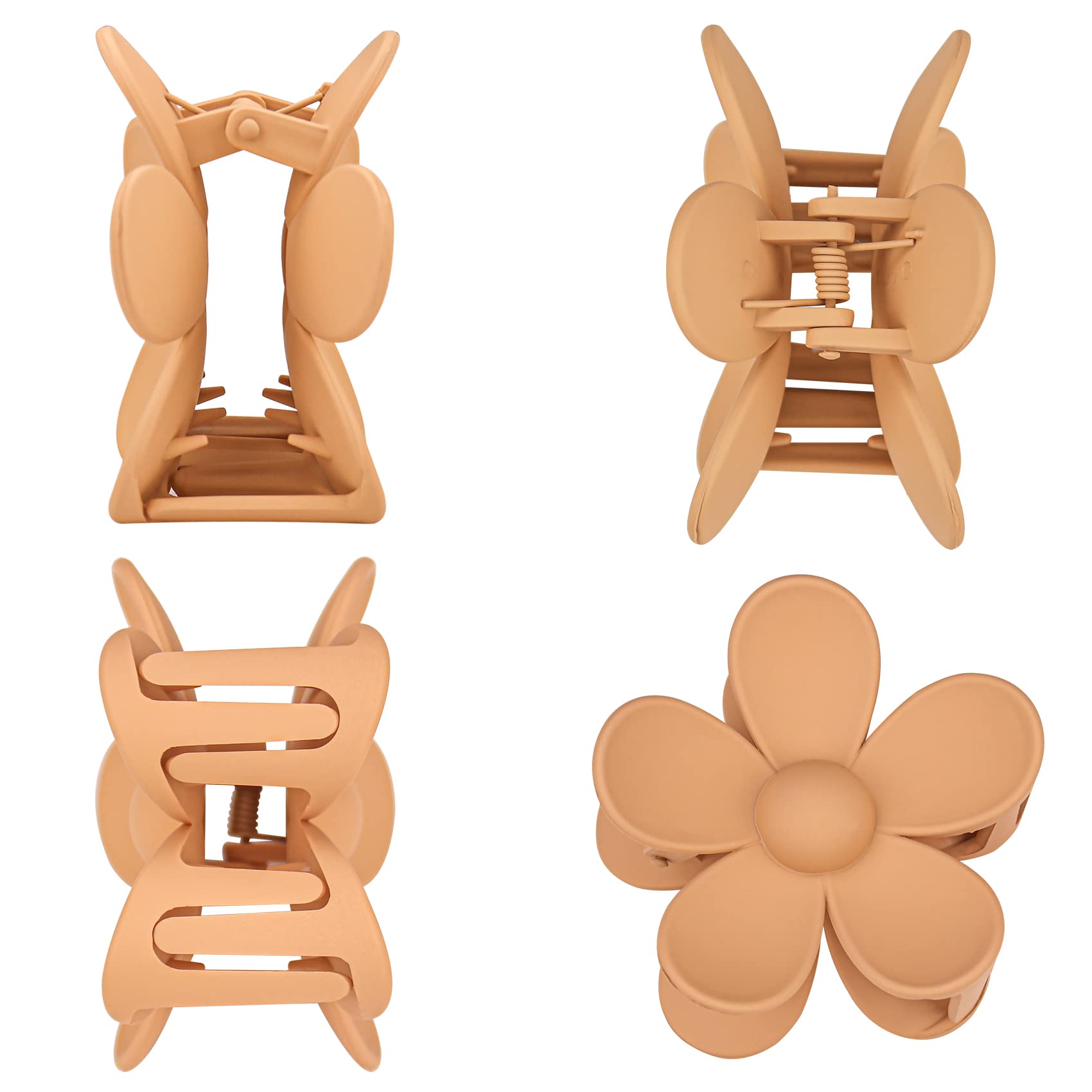 - Package Include: 12 pieces matte flower big hair claw clips, large size acrylic hair clamps barrettes, you will get 12 different colors french butterfly jaw clips, neutral color grip pin teeth clamp stylish hair accessories for women girls.