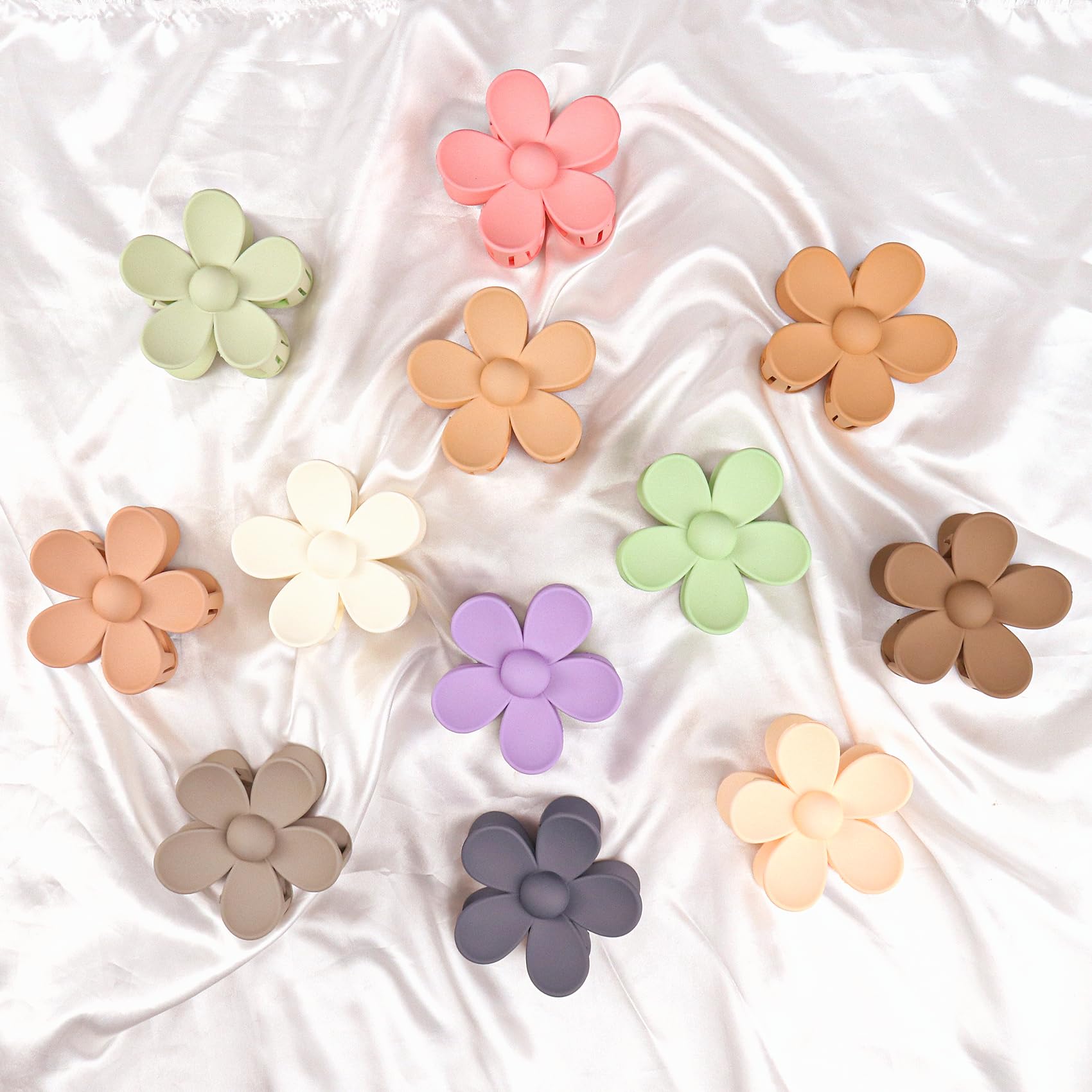 12 Pieces Flower Hair Clips for Women, Girls - Large Jaw Clips with Strong Hold for Thick & Thin Hair, 12 Matte Morandi Colors