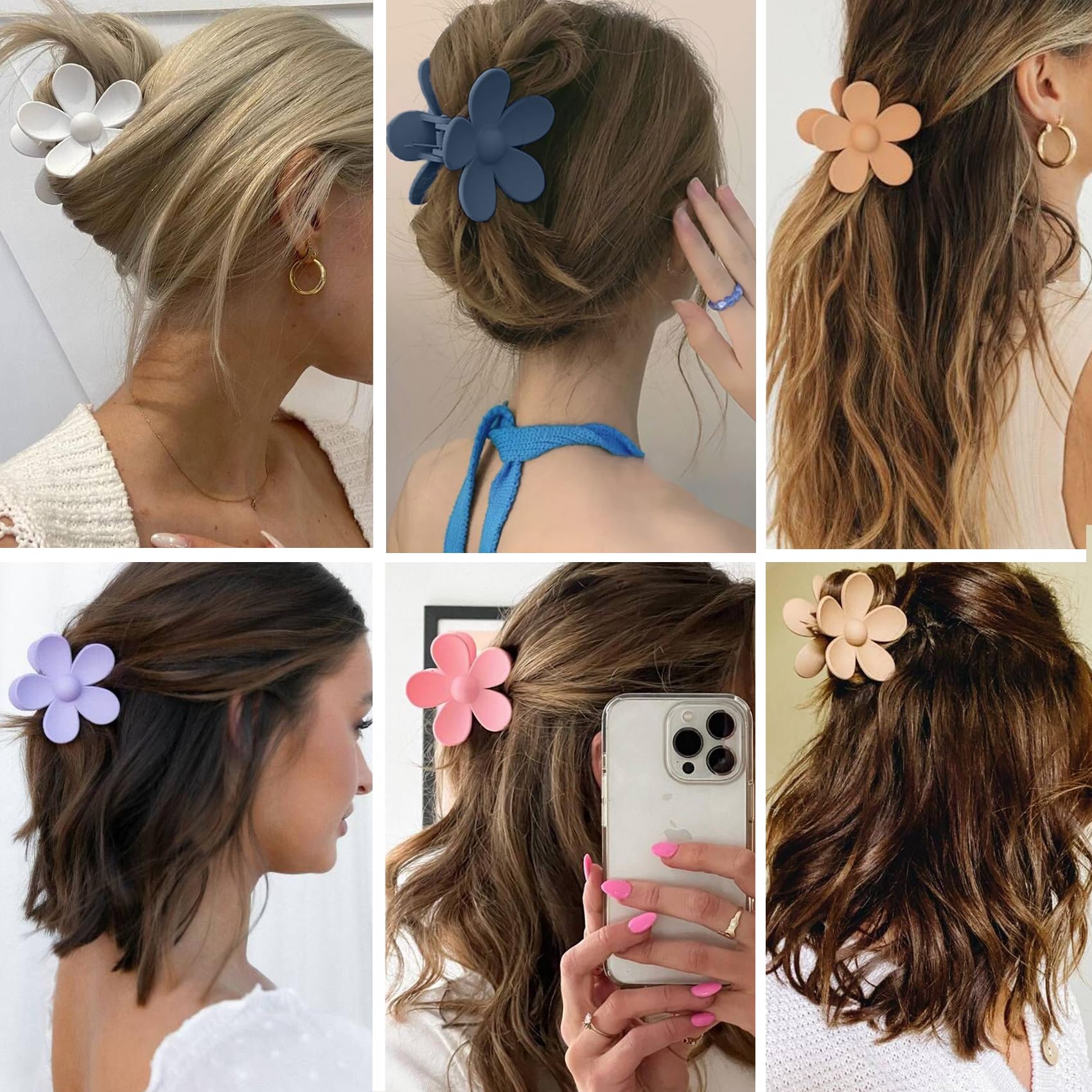 - Package Include: 12 pieces matte flower big hair claw clips, large size acrylic hair clamps barrettes, you will get 12 different colors french butterfly jaw clips, neutral color grip pin teeth clamp stylish hair accessories for women girls.