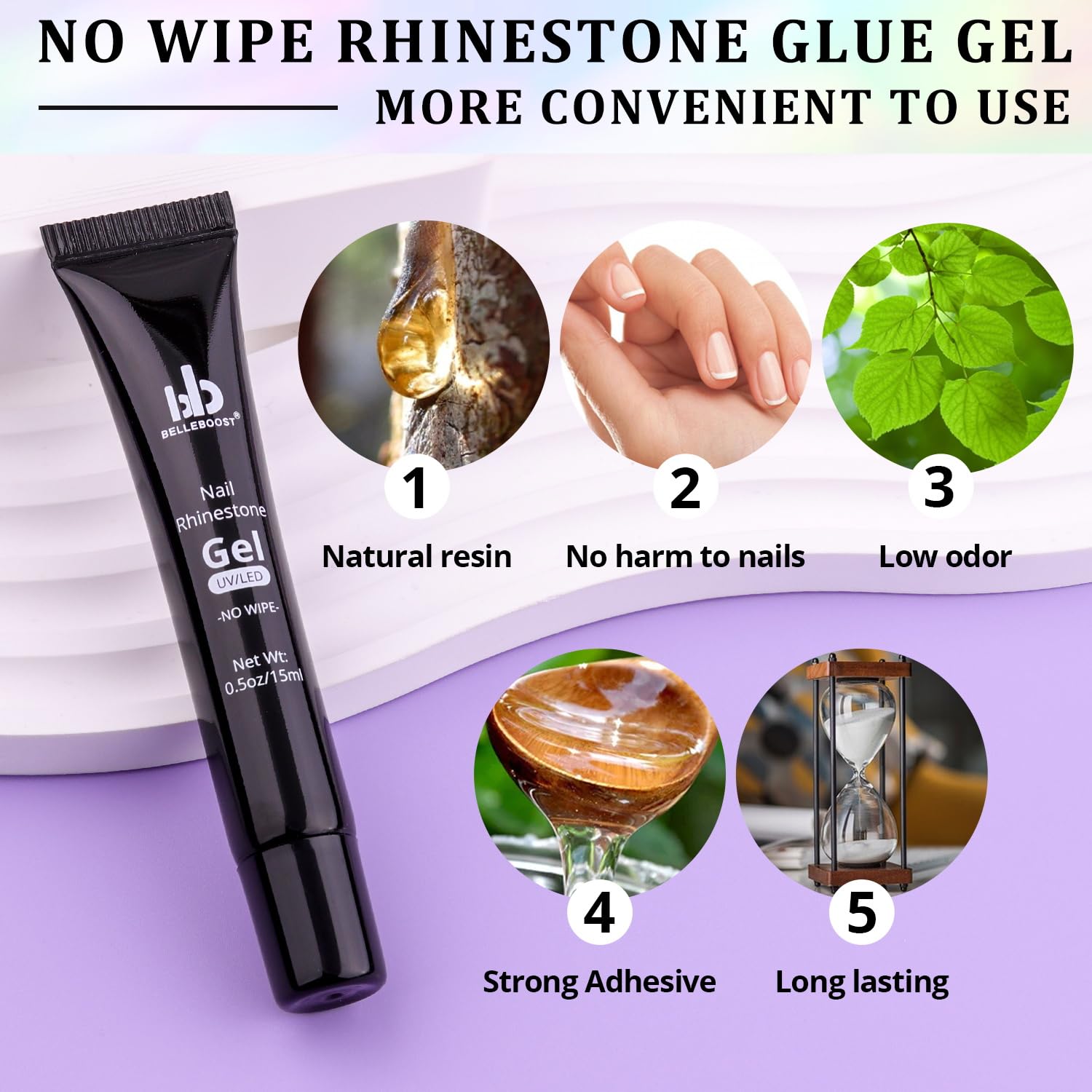 - 🎀 No Wipe Nail Charm Glue Gel: The nail charm glue(UV/LED Needeed) is made of natural resin. It is environment-friendly and does not harm your nails. The tube design make you easy to control the amount for your convenience. It is also with strong adherence after being cured and hold the charms on your nails for long.