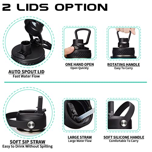 - 2 LID OPTIONS (Auto-spout & Straw): two different lids are complete LEAK PROOF & design for easy drink. The pops-up lid for easy drinking and seals shut for no leaks when you're on the go. The straw lid makes it easy to enjoy spill-proof sips, and package come with a alternative straw & a straw brush for easy cleaning
