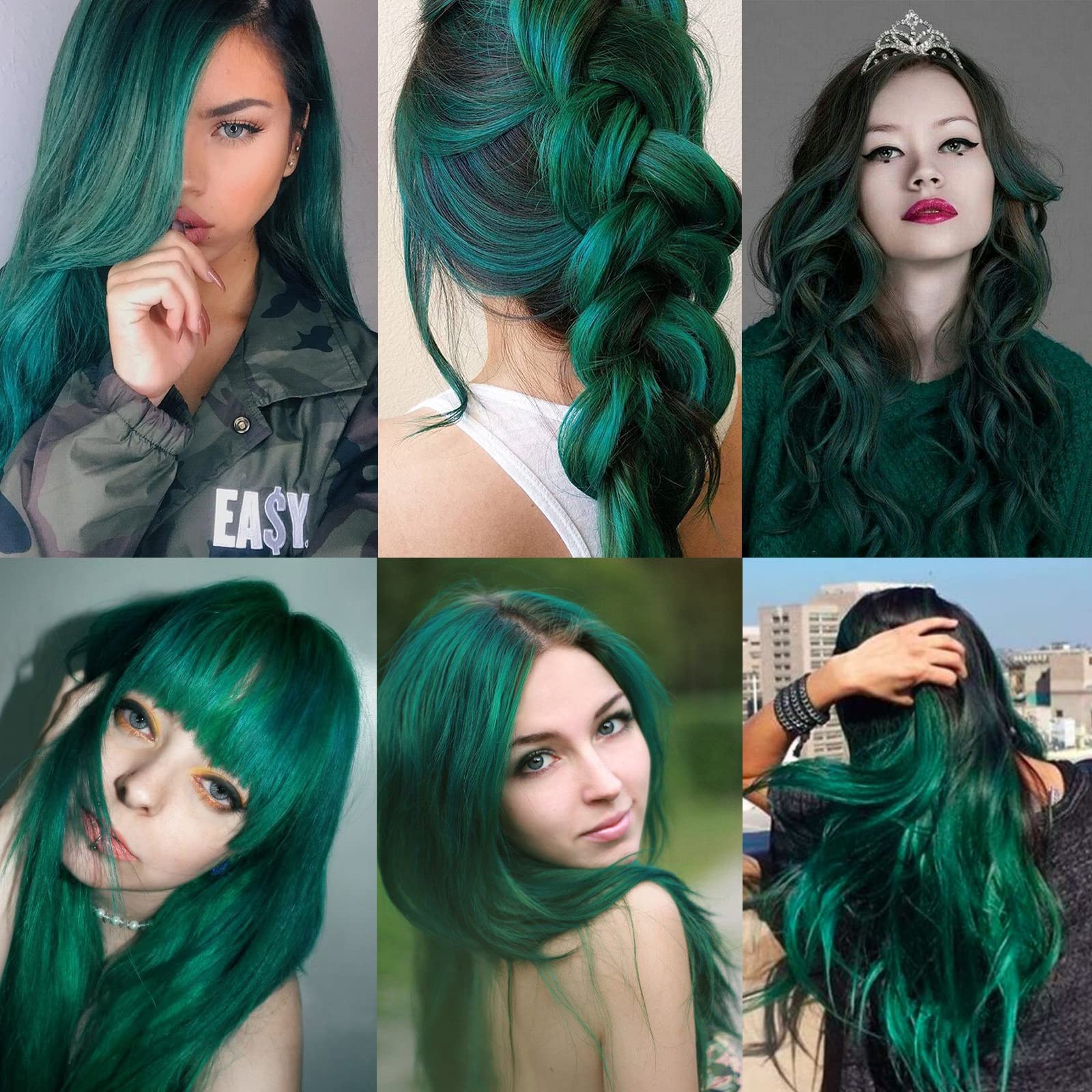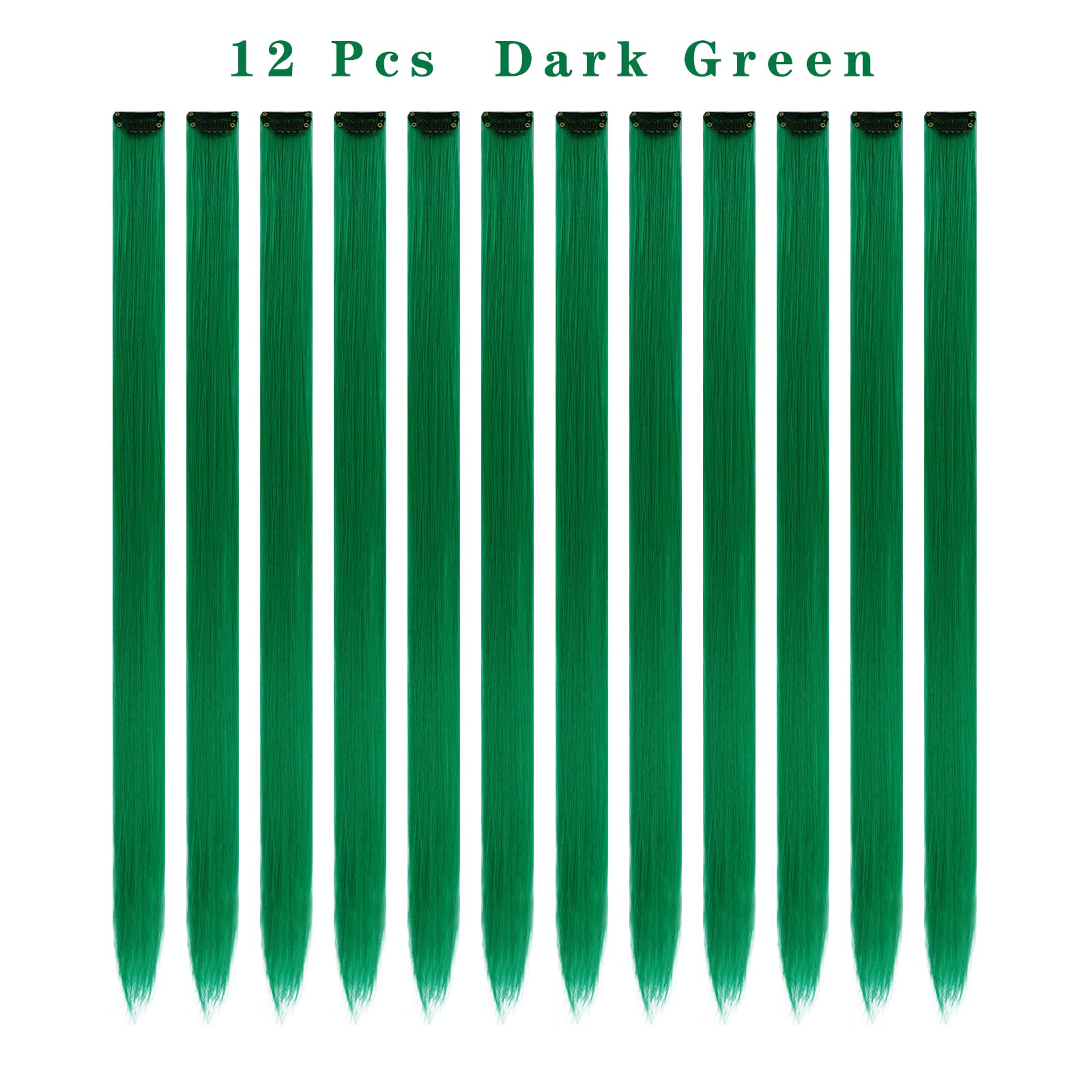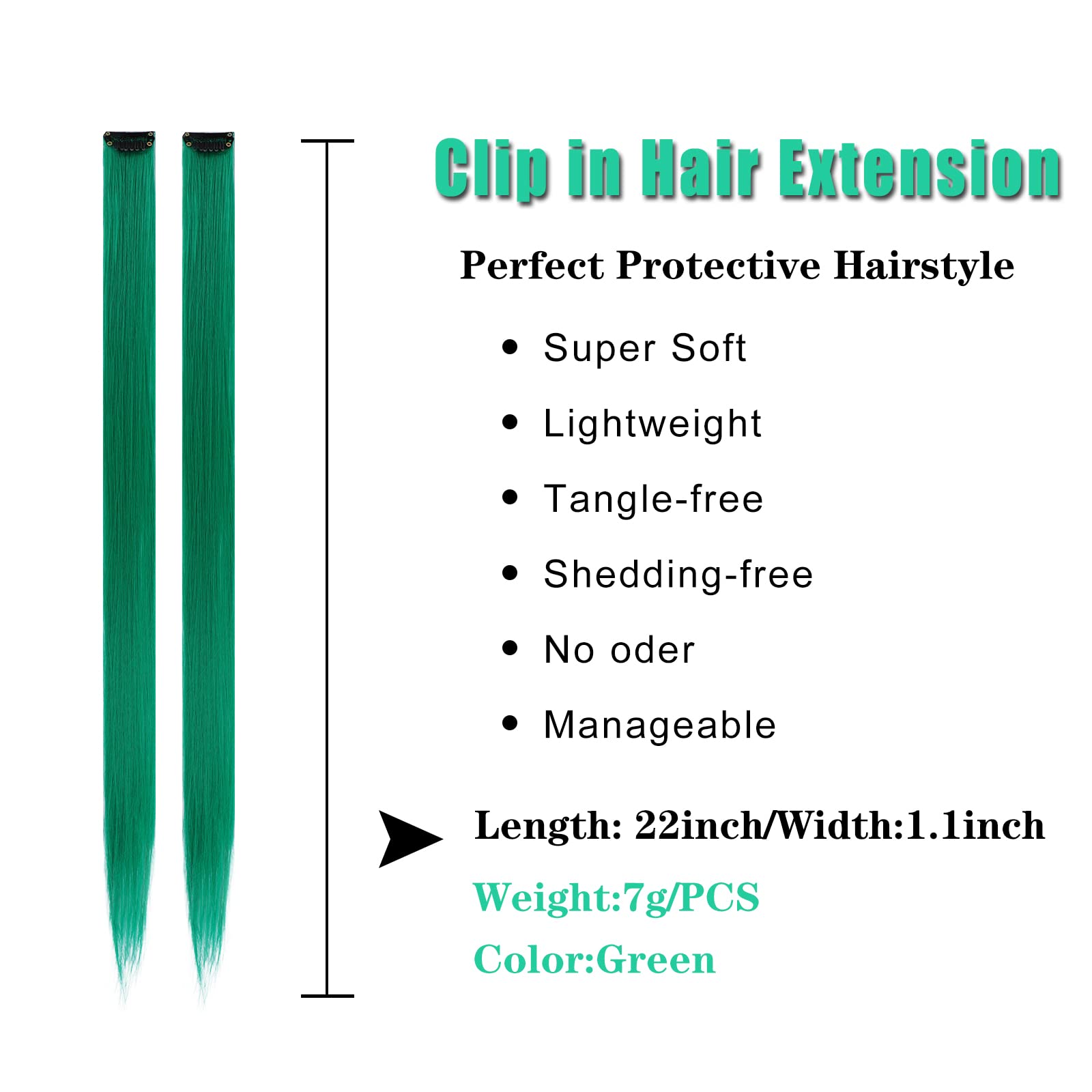 12PCS Colored Green Hair Extensions Party Highlights Colorful Clip in Hair Extensions 22 Inch Straight Synthetic Hairpieces for Women Kids Girls Halloween Christmas Cosplay(Green)