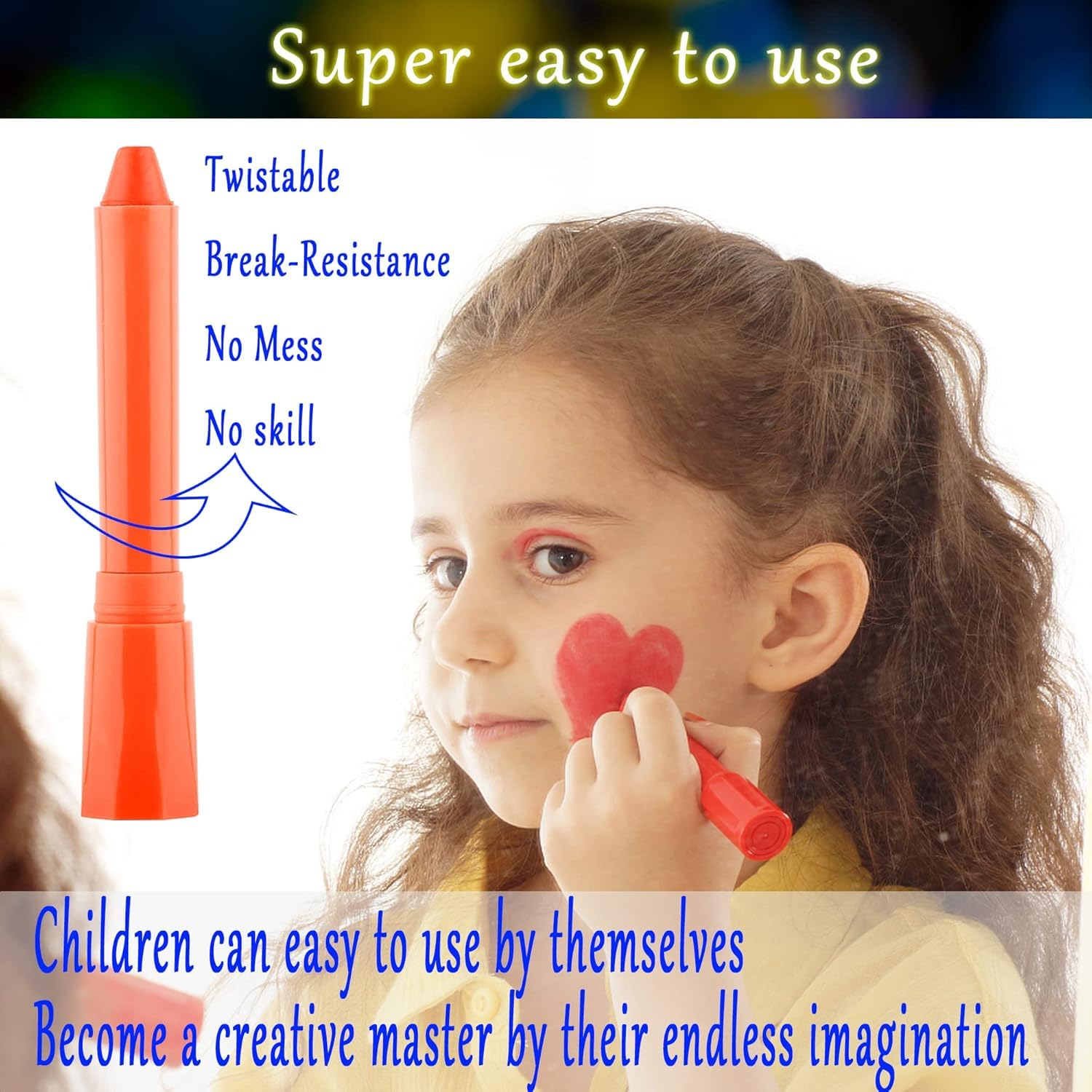 - WIDE APPLICATION - This face body painting kits is incredible!!! Fluorescent crayons can shine in the dark,Ideal for black light birthday parties, mardigras, halloween, masquerades,clubbing, Festivals and Anywhere with UV Lighting