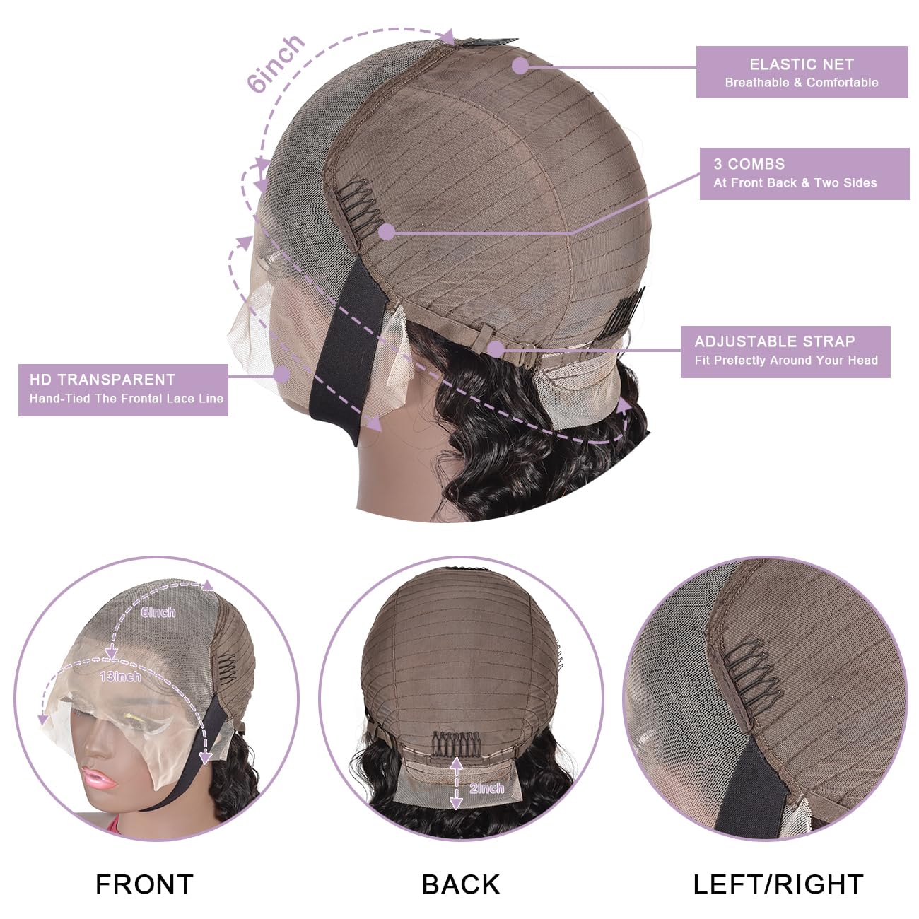 - 4.Deep Wave Wig Cap: glueless wigs human hair pre plucked, medium cap size(22 inch - 22.5 inch), fit most people, with 3 combs and two adjustable straps make it easy to install, breathable & durable lace material make it more comfortable