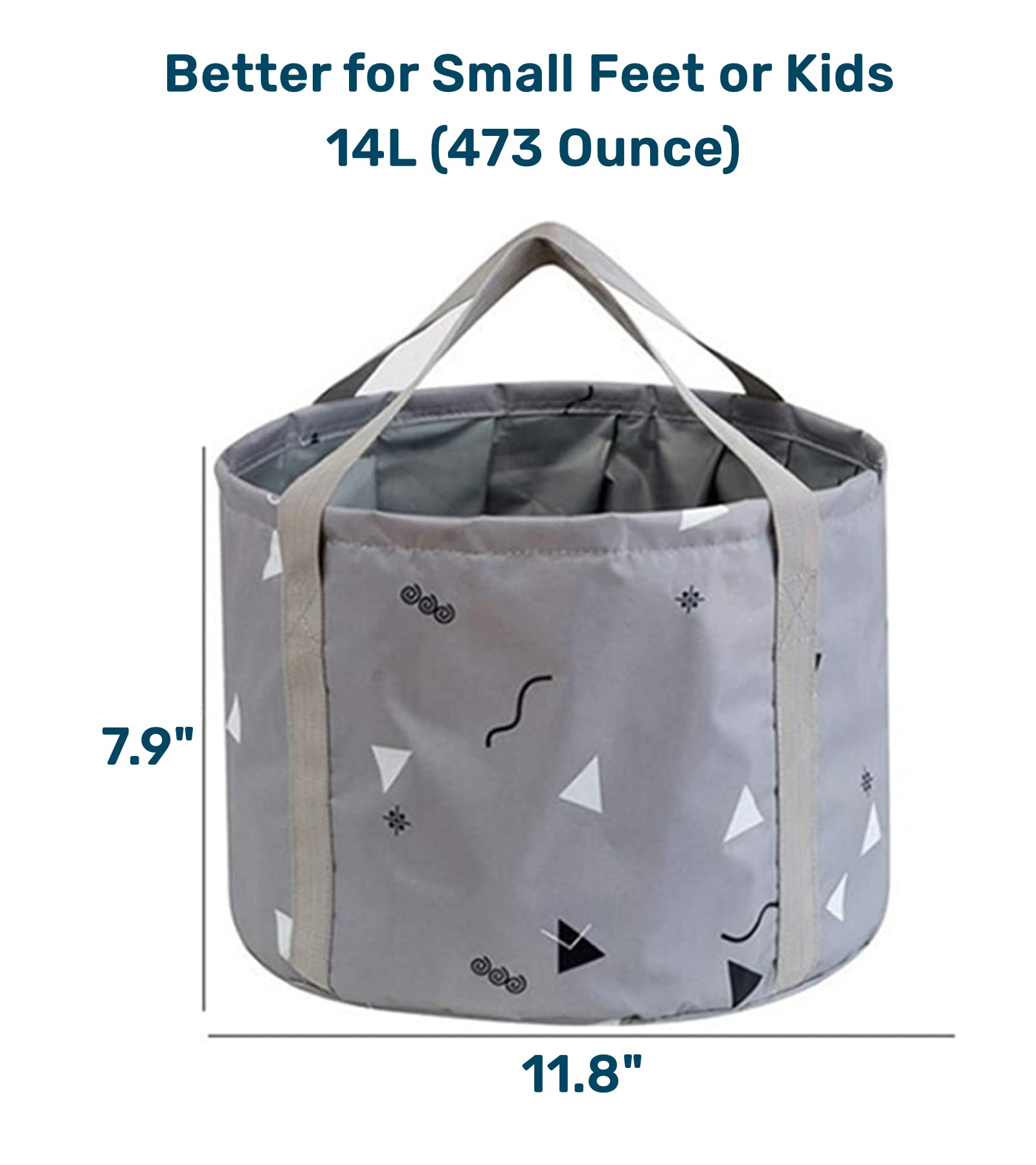 14L Collapsible Feet Bath Basin Soaking Bag for Kids, Portable Foot Spa Soak Tub Foldable Water Bucket for Travel Camping, Grey
