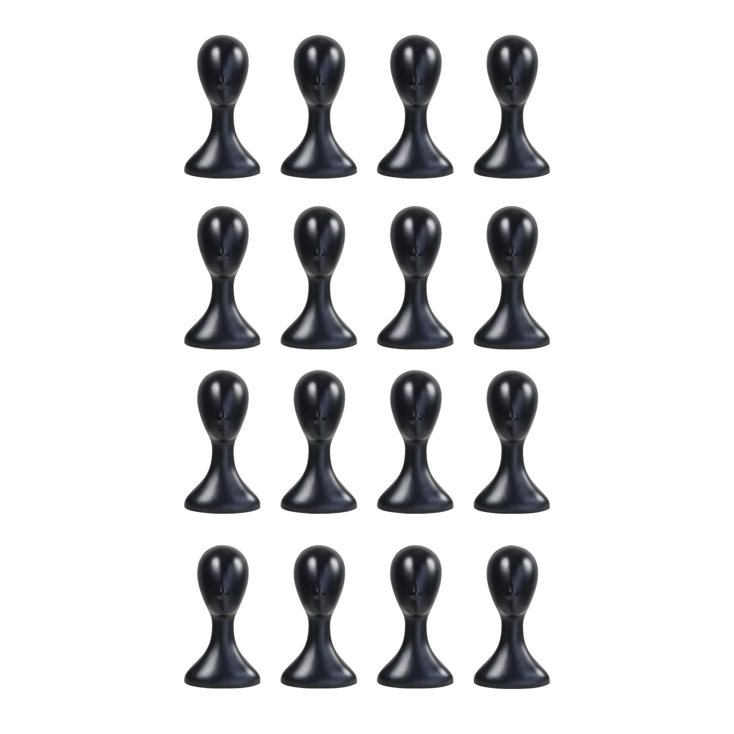 16 Inch Studio Limited Professional Plastic Mannequin Head Durable Women Model Wig Head Stand Torso Styling Making Display Holder with Jack for Wigs, Hat, Mask, Headdress, Necklace (Black, 16 Pack)