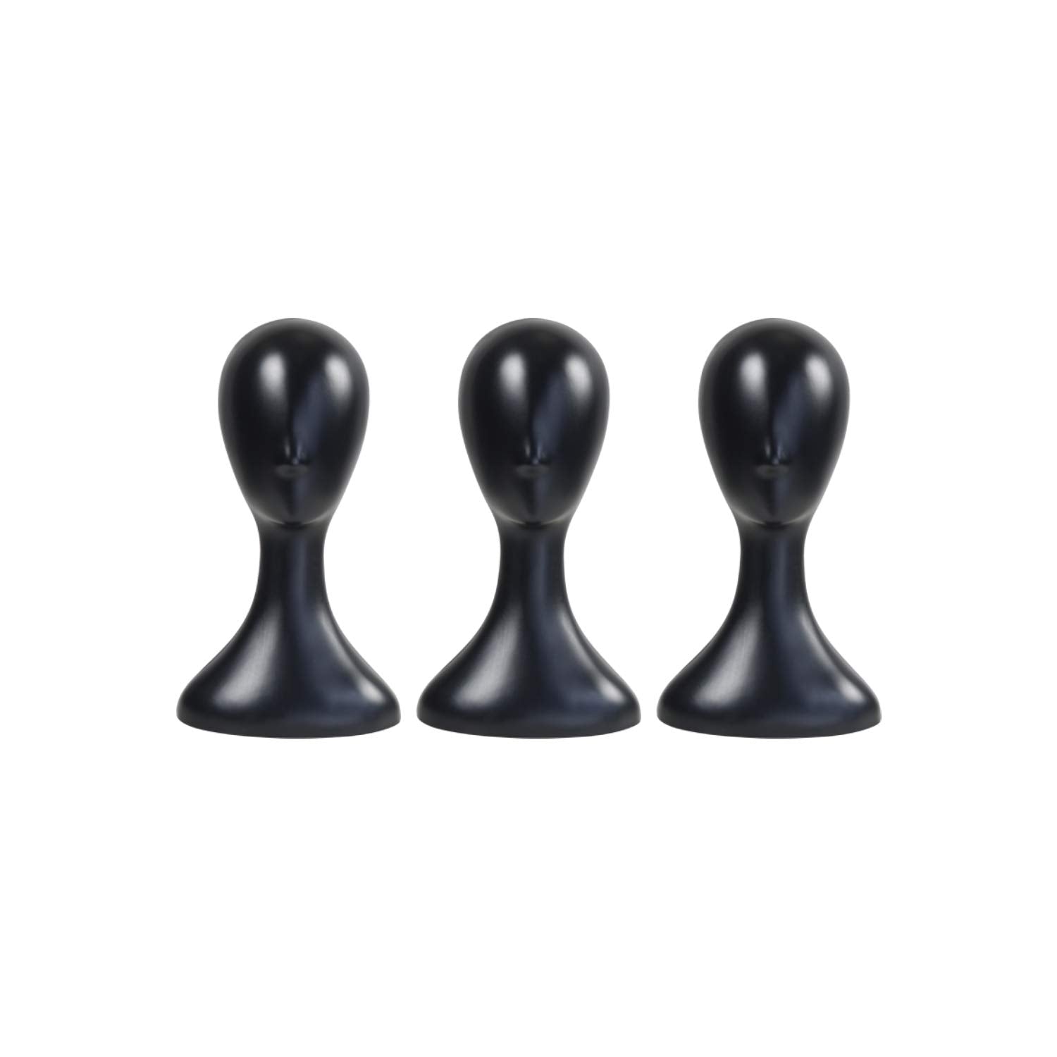 16 Inch Studio Limited Professional Plastic Mannequin Head Durable Women Model Wig Head Stand Torso Styling Making Display Holder with Jack for Wigs, Hat, Mask, Headdress, Necklace (Black, 3 Pack)