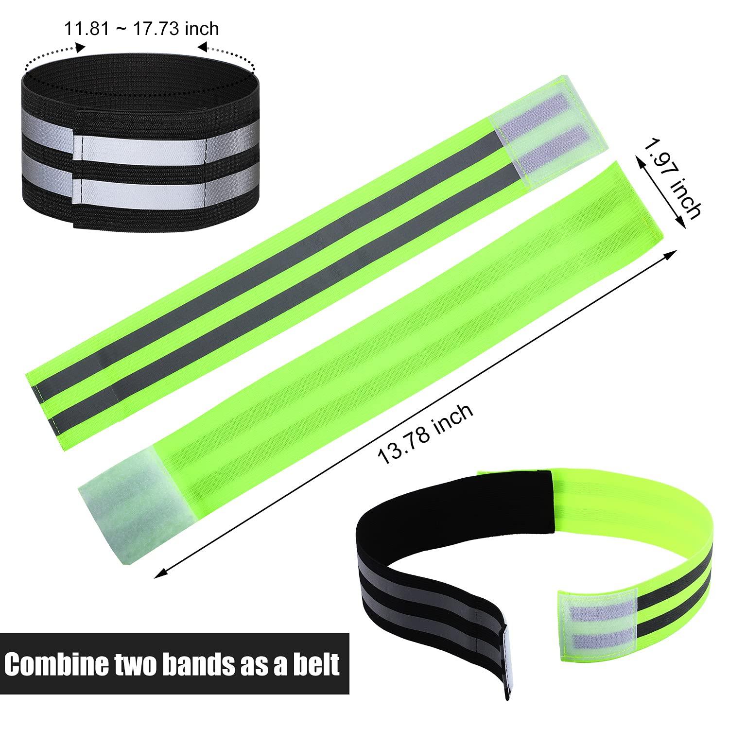 - What you'll get: total 16 reflective bands, lightweight, versatile, comfortable and fully adjustable, so it can be worked as reflective arm bands, reflective wrist bands, reflective ankle straps, reflective belt, reflective ankle bands, reflective bike leg band, bicycle pants clips, straps, cuffs or holders