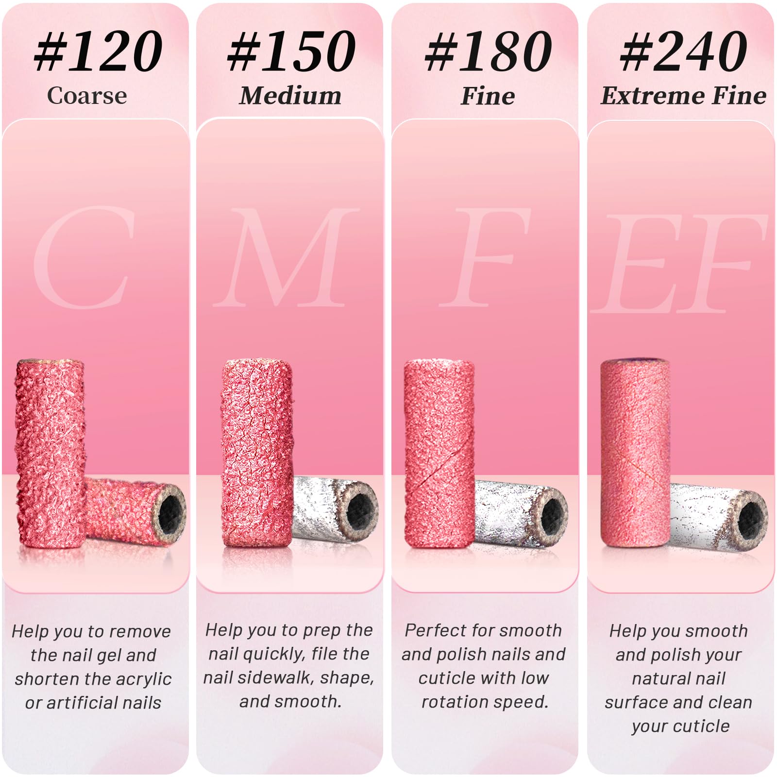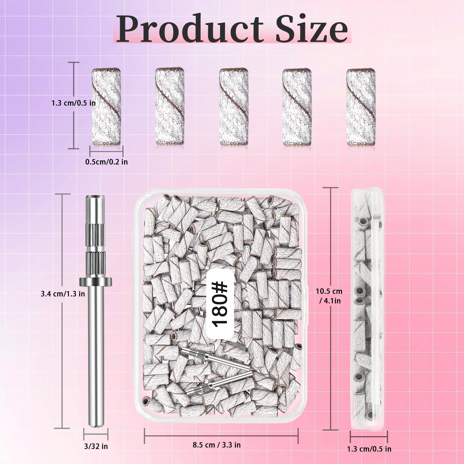- 180 Grit Mini Sanding Bands For Nail - Fine Grit: The small nail sanding bands 180 grit are commonly focus on shortening, shaping and polish natural nails and cuticle with low rotation speed. Fine sanding bands for nail drill, suitable for nail tech, nail art love and nail beginner, manicures and pedicure.