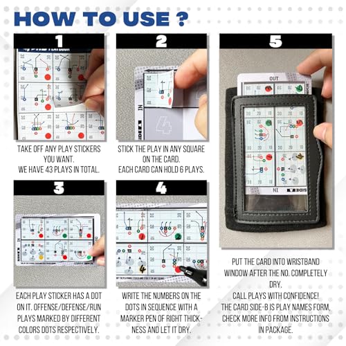 - Tactical Stickers Included:Our kit comes with 43 commonly used football tactical stickers covering offensive, defensive, and running plays. These stickers can be affixed to any grid on our tactical cards, allowing you to create a unique tactical wristband. Made from PVC, they are not only durable but also reusable