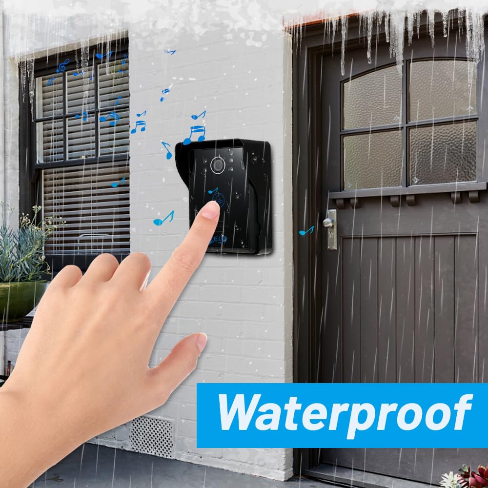 - IP55 WATERPROOF AND 7 INCH LCD TOUCH BUTTON DISPLAY: With rain cover, IP55 waterproof design, dustproof, vandal proof, HD camera with built-in speaker and microphone, infrared night vision, 135o wide viewing angle. 7-inch UI interface display, indoor display can store up to 100 photos with date and time for a superb experience.