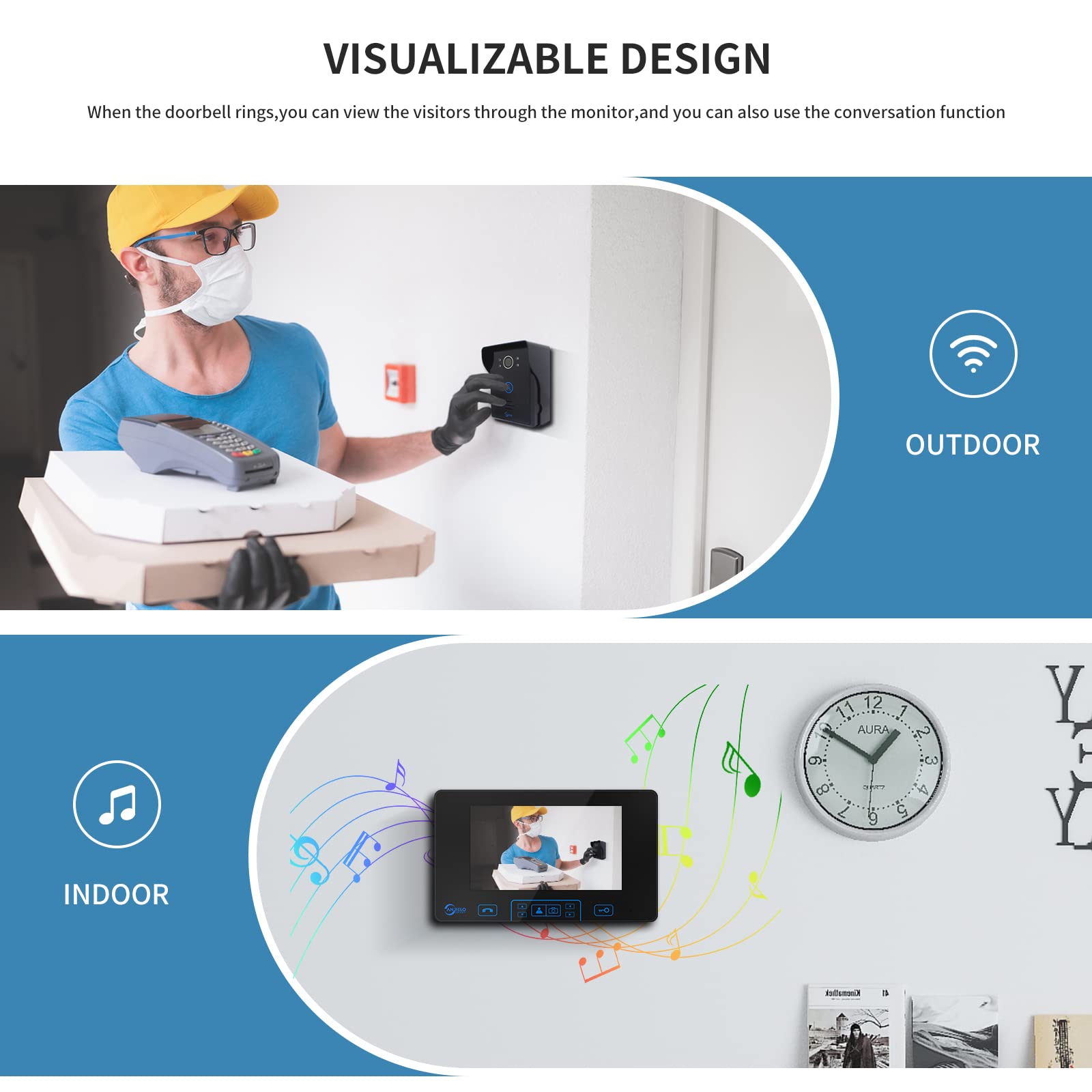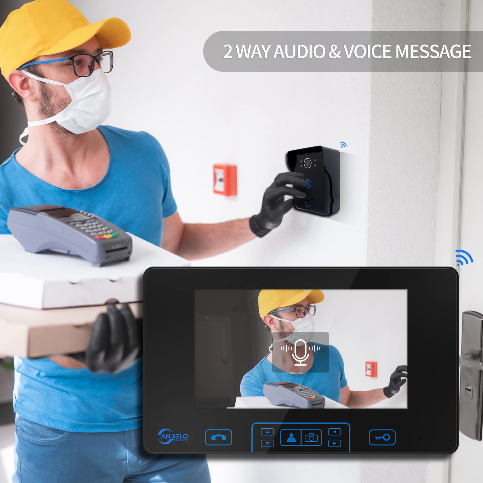- TRUE WIRELESS VISUAL INTERCOMMUNICATION SYSTEM: Newly upgraded and designed in 2023, this visual doorbell is exclusive to ANJIELO, truly wireless product, no need for wifi or downloading APP, you can place the monitor anywhere and extend the distance of about 984 feet. Widely used in flat, villa, hotel, office, home, company, etc.