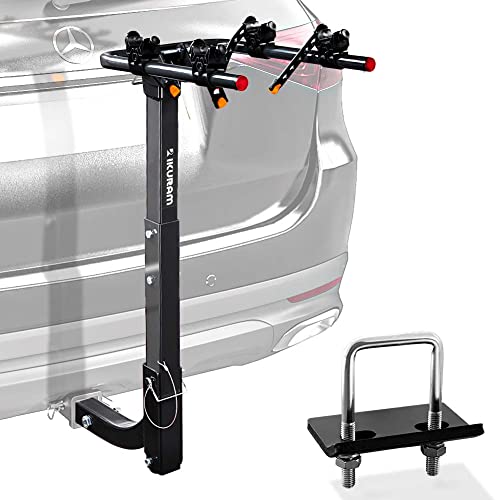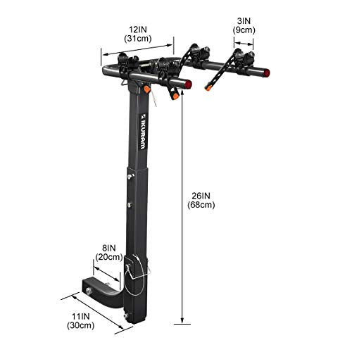 Details: About IKURAM In addition to standard IKURAM rack features, such as easy one-time assembly with minimal tools, reversible (left or right) assembly and anti-wobble attachment to hitch, the KRB-H020B bike carrier rack comes with these new features: Fully adjustable and protective tie-down cradles system safely secure a wide range of bikes with durable, UV resistant rubber cradle straps. Increased mast height improves ground clearance and adjustable and Individual tie-down cradles design in carry arms offers easy bike loading and carrying. Not intended for tandem or recumbent bikes; carrying bikes with step-through frames requires the purchase of an adapter (sold separately) With the IKURAM bike Carrier Hitch Rack, you can carry your lovely bikes everywhere that you want at the most reasonable price!
