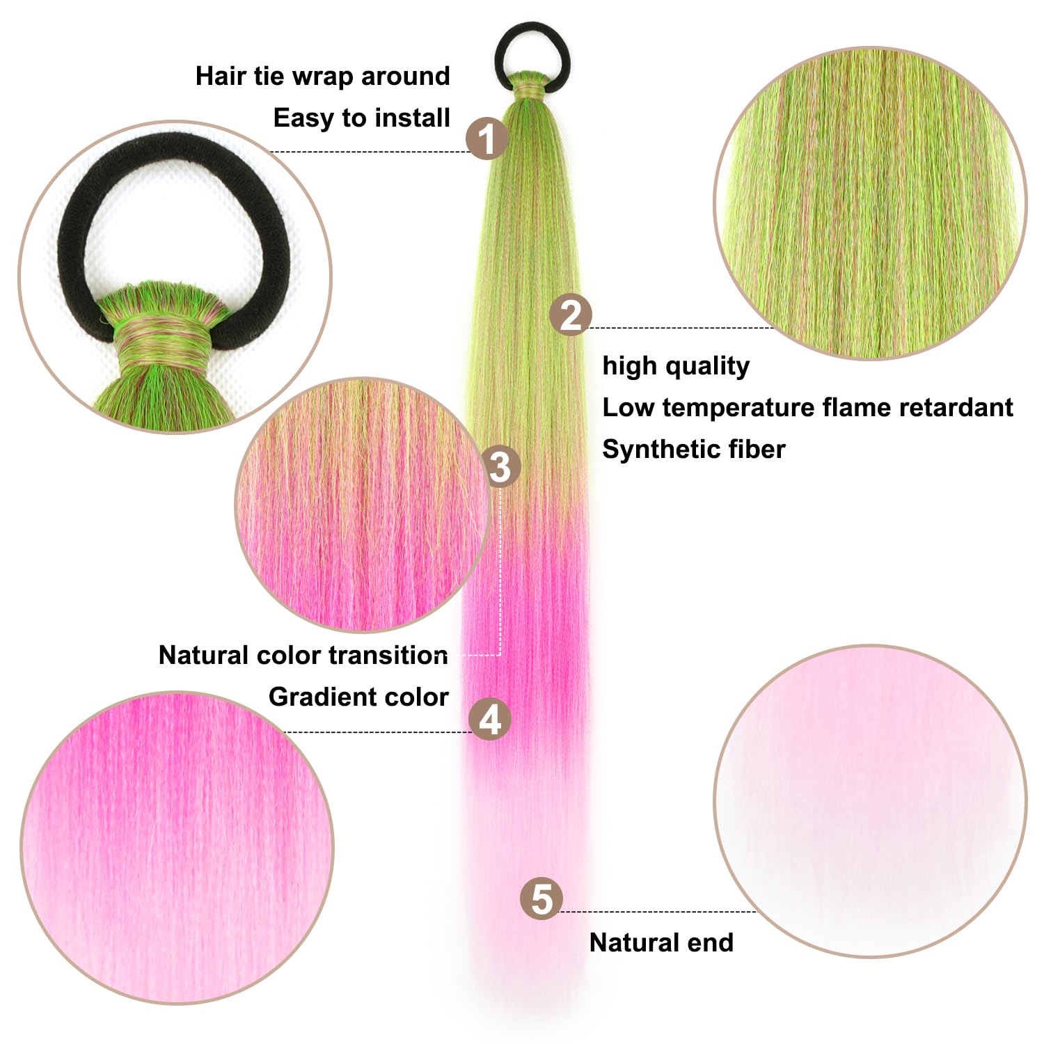 - Colored Ponytail Hair Extensions: Vibrant and Delight Gradient Colors for Instant Highlights for Girls
