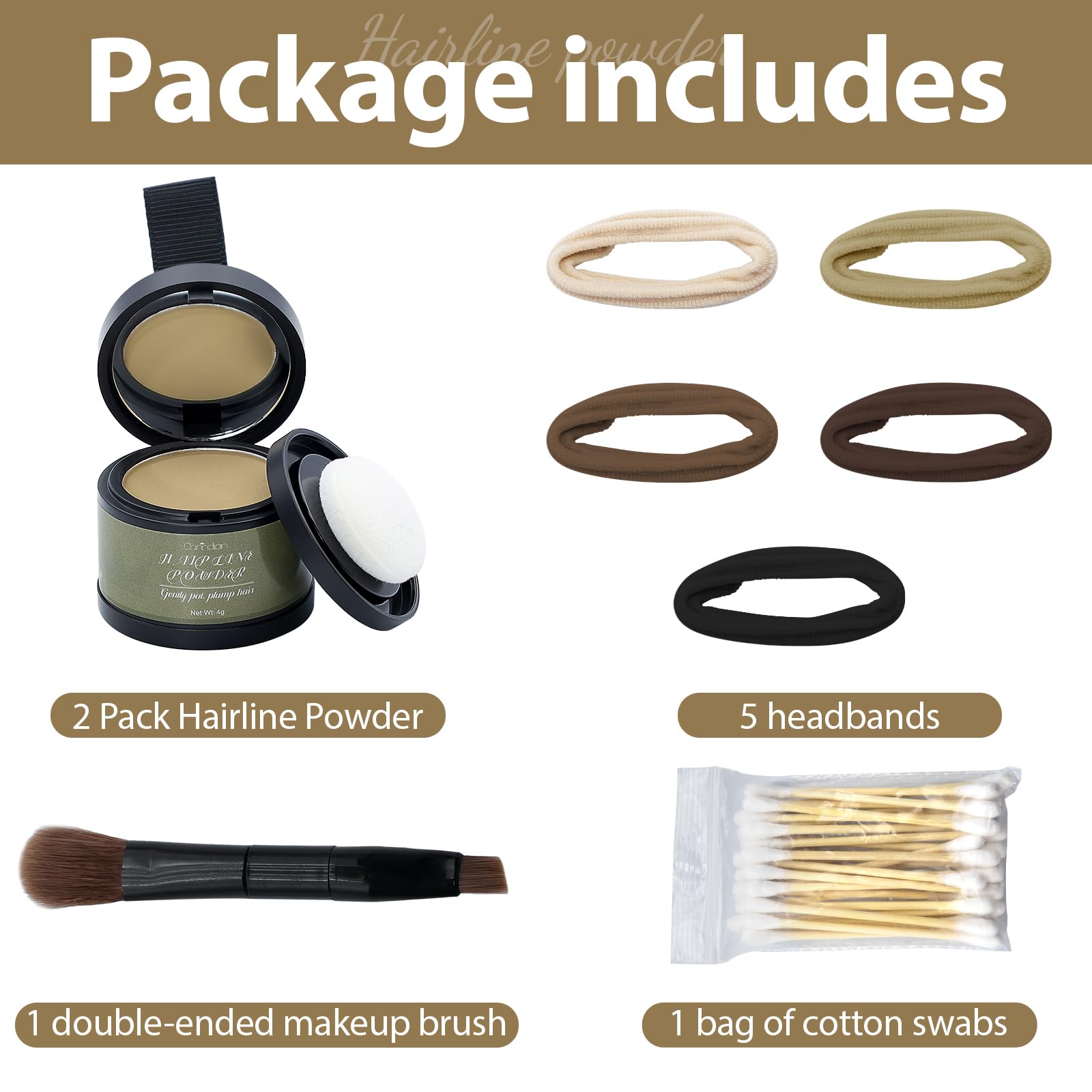 - Value Package: Our set not only contains two bottles of high-quality hairline powder, but also carefully prepared five fashionable rubber bands, a practical ended makeup brush and a bag of cotton swabs for you. Double the powder means double the beauty and convenience