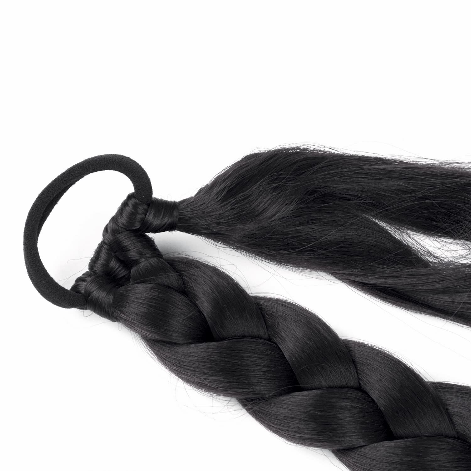 2 Pack Long DIY Braided Ponytail Extension with Hair Tie Straight Wrap Around Hair Extensions Ponytail(2#)