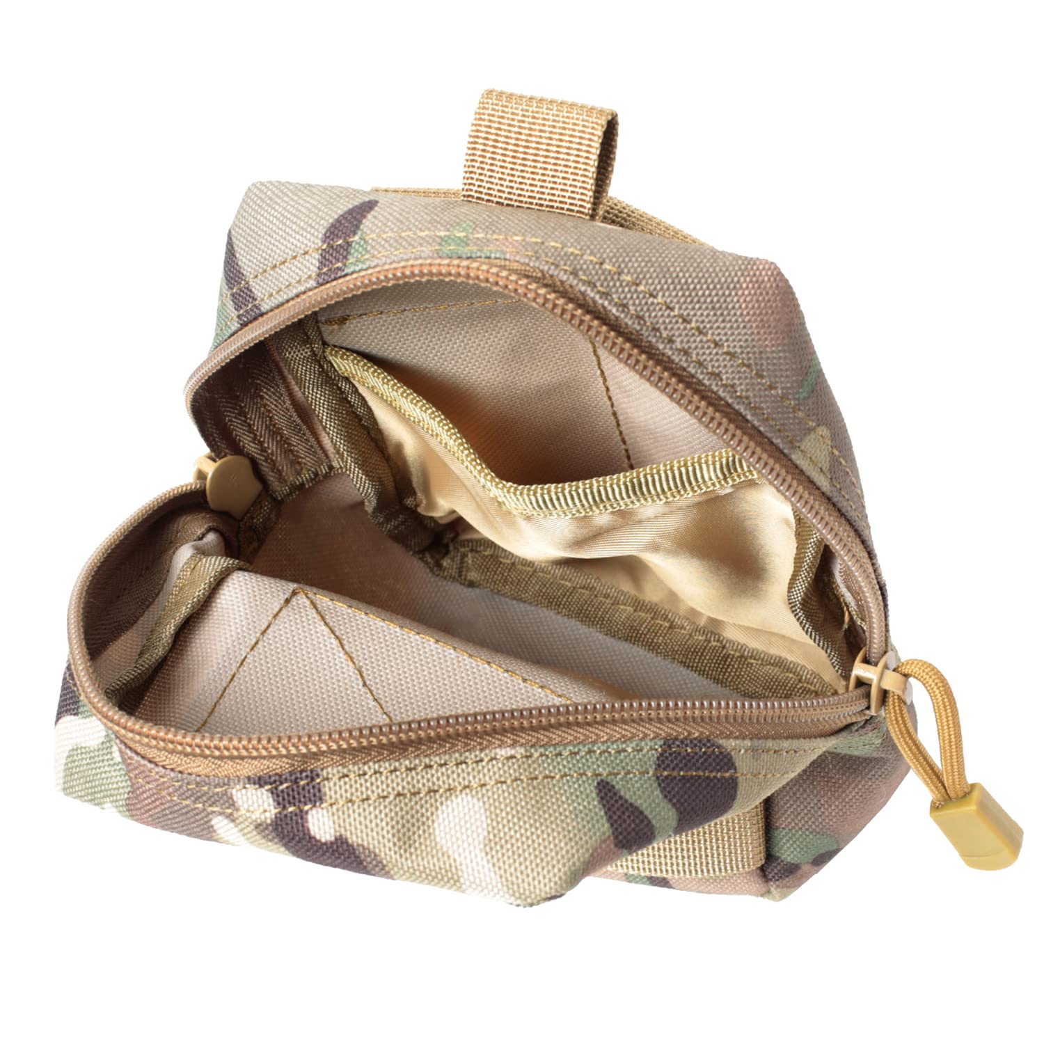 Details: This compact molle pouch has perfect size: 6.1' x 4.5' x 2.2'. Molle straps can be attached to belt or tactical backpack.