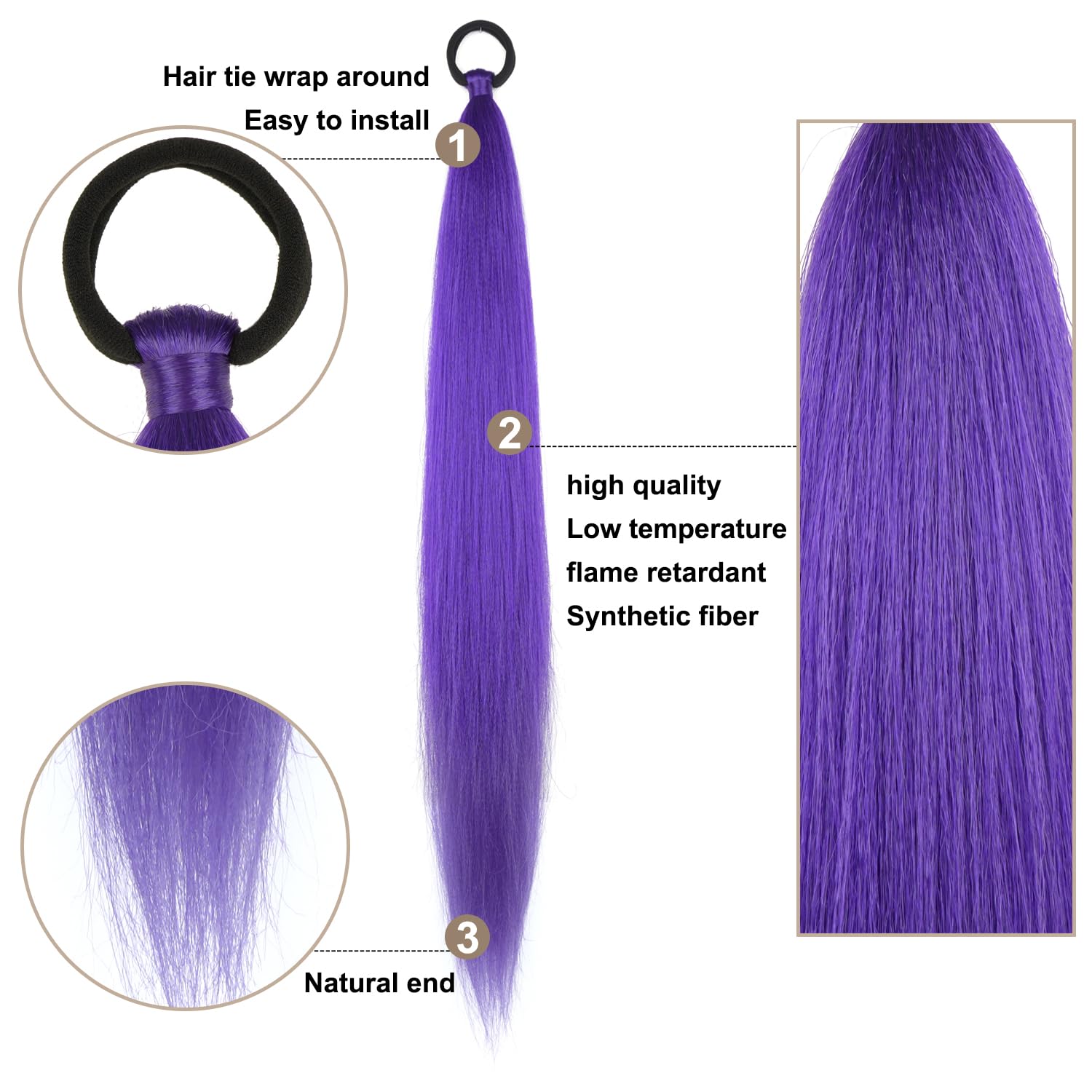 2 Pack Purple Ponytail Extension with Elastic Tie Straight Sleek Wrap Around Braid Ponytail 26 Inch (Purple#)