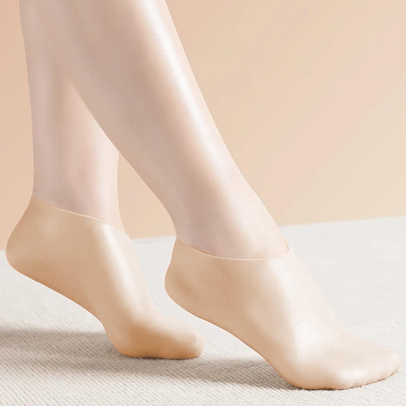 2 Pair Silicone Moisturizing Socks Gloves Set, Gel Socks for Dry Cracked Feet Women Men, Lotion Aloe Spa Pedicure Socks for Foot Softening Care, Silicone Hand and Feet Gloves (Nude)