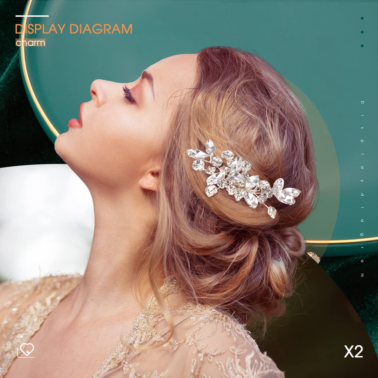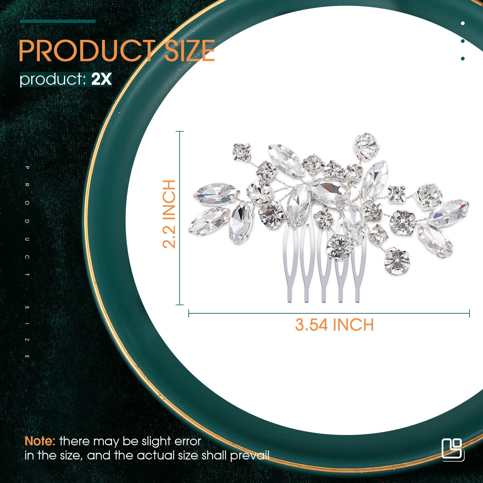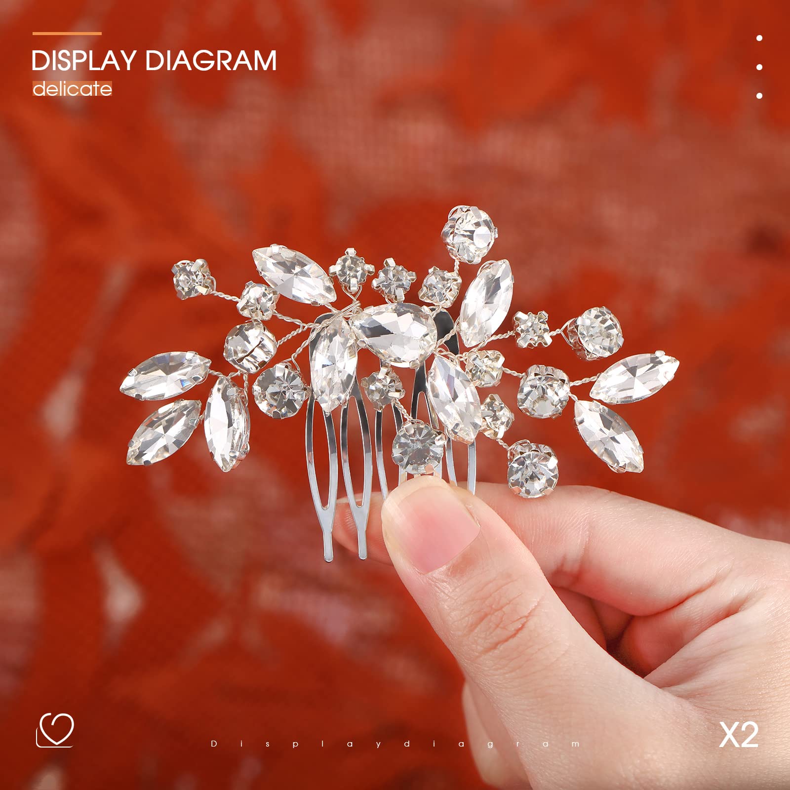 2 Pcs Bridal Wedding Hair Comb Rhinestone Silver Bridal Side Comb Crystal Rhinestone Hair Accessories for Women and Girls