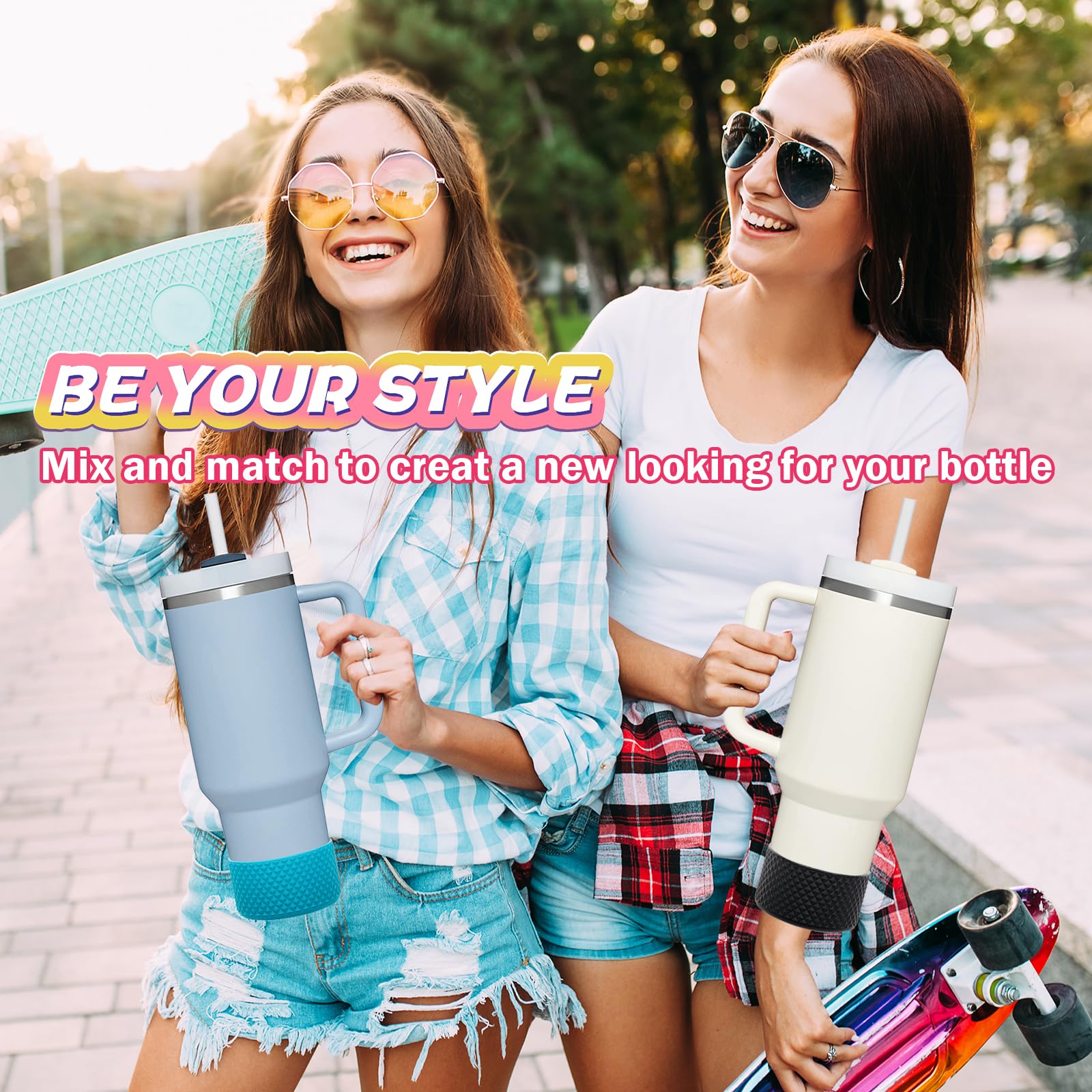 2 Pcs Tumbler Bottom Protector Boot for Stanley Quencher Adventure 40oz & Stanley IceFlow 20oz 30oz and Compatible with Hydro Flask Water Bottle 12oz 21oz 24oz Stealth Landing (Diomond Naguna/black)