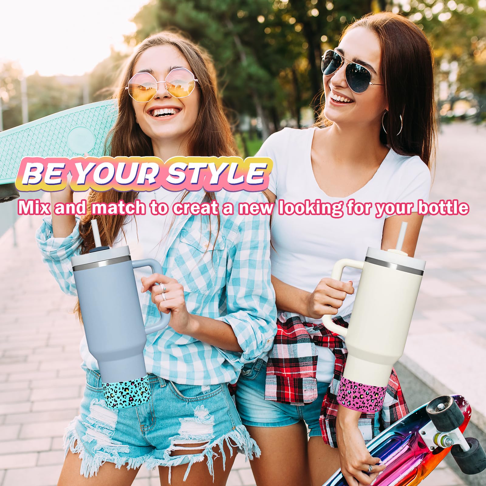 2 Pcs Tumbler Bottom Protector Boot for Stanley Quencher Adventure 40oz & Stanley IceFlow 20oz 30oz and Compatible with Hydro Flask Water Bottle 12oz 21oz 24oz Stealth Landing (Green/carnation leo)