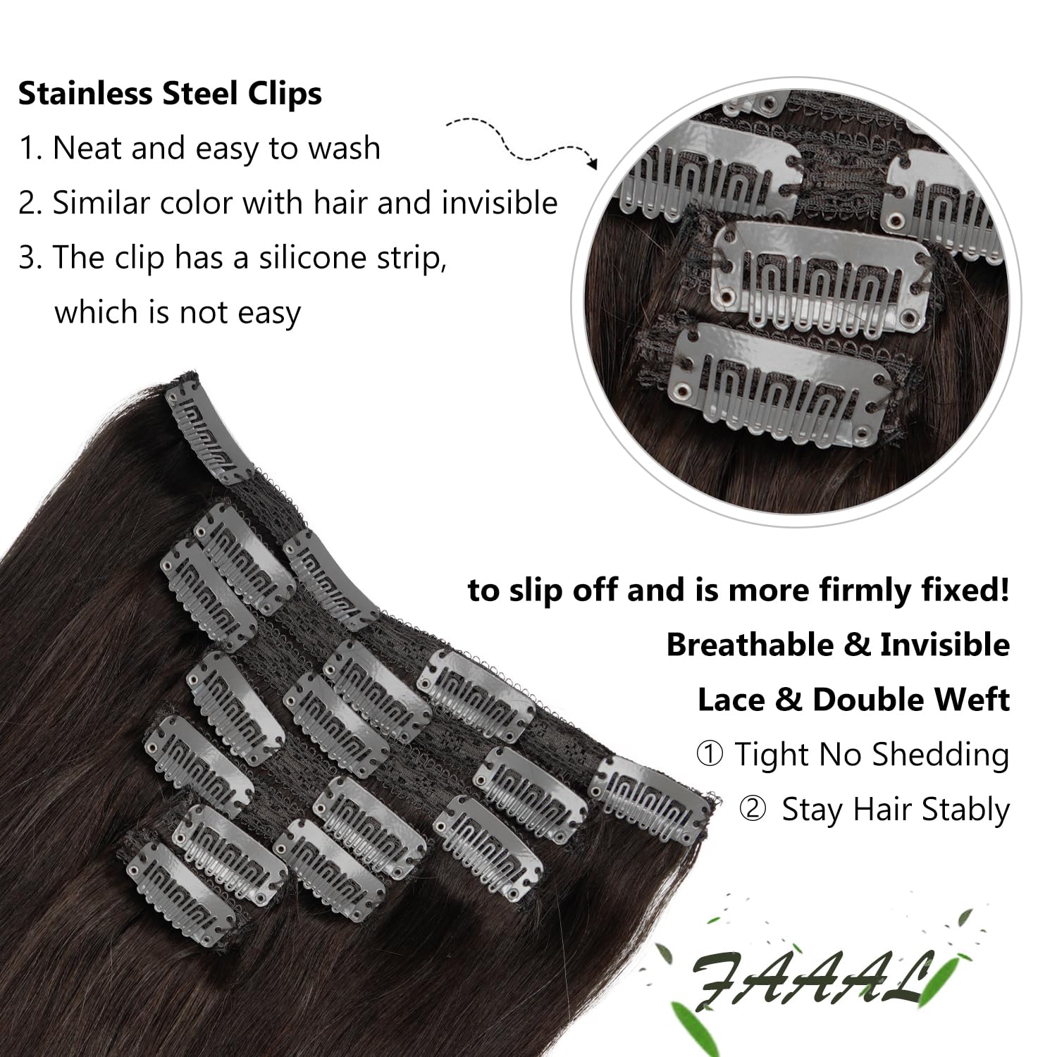 - Quality Clips: High quality clips can reuse many times, clips are well sewn into each weft firmly, comfortable and durable, and easy to put in and take off as you want