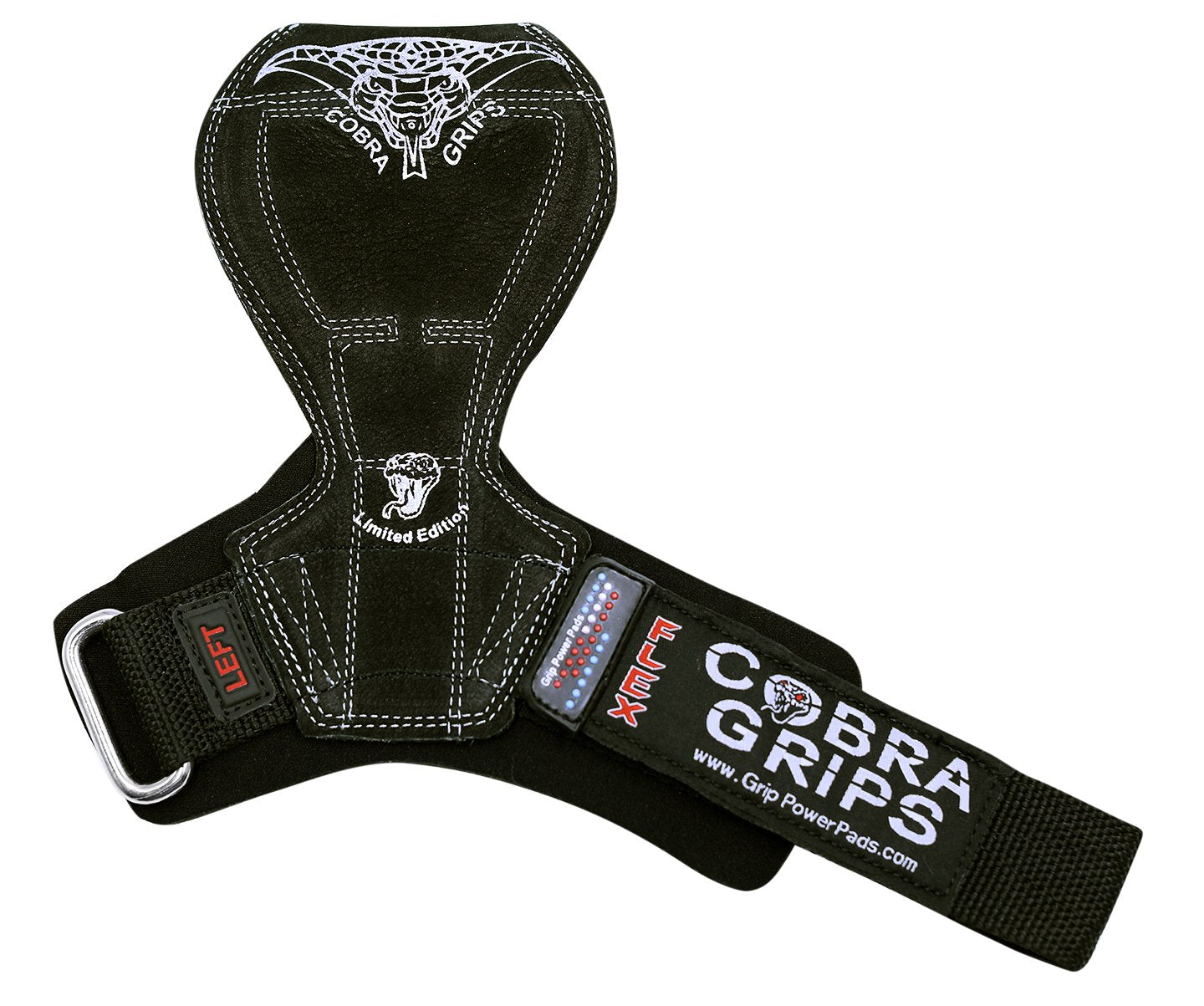 Details: This listing for our New Cobra Grips 2018 FLEX Model PATENT number USD804589S1 that comes in three different sizes for men & women. Lifting grips, lifting straps and power hooks are designed to make your workout safer and more comfortable, but most products just complicate your workouts. Many just aren't thick enough to function well as a grip pad, leaving you with chaffing despite having used protection. Others may be thick but feature awkward wrist wraps and have ill fitting designs that are a different kind of pain! Plus, having to carry grips, straps and hooks in your gym bag is a hassle you just don't need. Fortunately, there is a way to get the protection you need without compromising your performance of over stuffing your gym bag. Lifting Grips by Grip Power Pads are the solution Lifting Grips by Grip Power Pads are unlike any other gym gloves alternative on the market today and are so advanced that we're patenting their exclusive technology. With this single fitness accessory, you get a grip pad pair to protect your hands from chaffing, lifting straps for improving your grip and power hooks to help you keep hold of the bar. Adjustable Wrist Straps. What you won't get is the hassles of having to adjust separate wrist wraps, as the wrist bands are built right into the Lifting Grips by Grip Power Pads for maximum comfort and convenience. Made from flexible neoprene, Lifting Grips by Grip Power Pads measure 6 millimeters in thickness, so they provide ample cushioning that can outperform many a grip pad sold on Amazon. The no-slip design keeps your hands perfectly positioned on the bar with none of the sliding you can experience with ordinary lifting straps. The ergonomic design ensures the safety of the fingers, hands and wrists, and the lifting grips are fully adjustable, so you'll never be held back by awkward gloves again. You can use Lifting Grips by Grip Power Pads for all types of pulling and pushing moves.