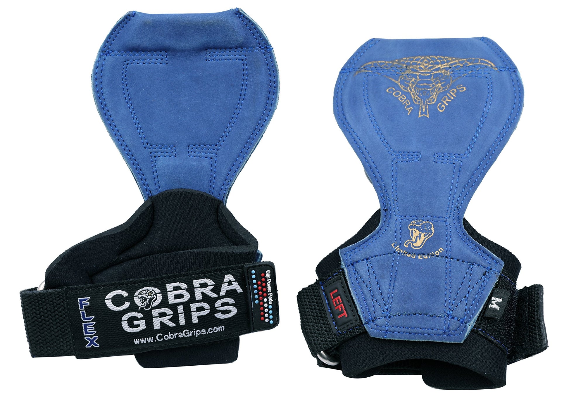 2018 Cobra Grips Flex Model Weight Lifting Gloves Heavy Duty Straps Alternative Power Lifting Hooks Best for Deadlifts with Padded Wrist Wrap Support Bodybuilding (Medium, Blue Leather)