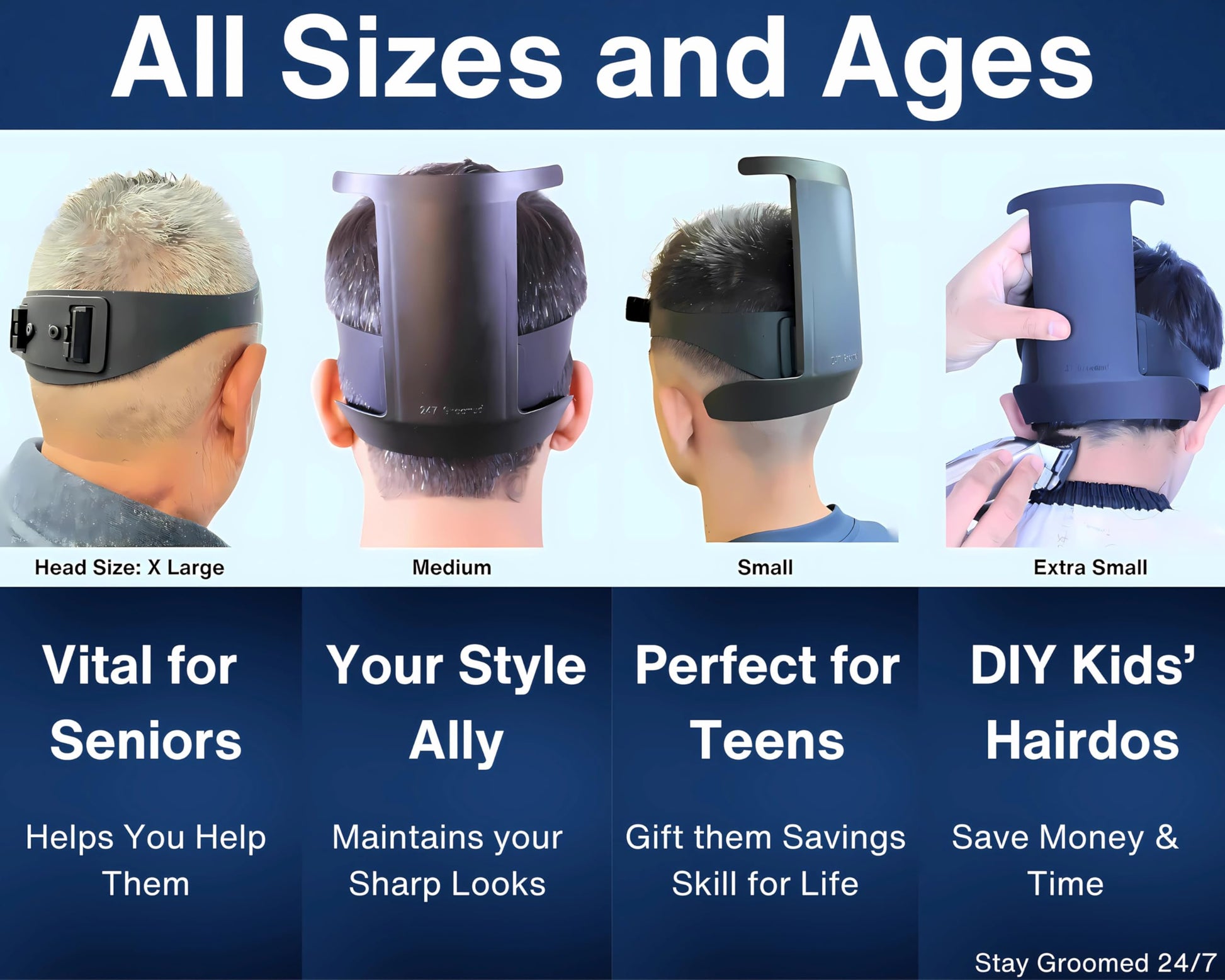 247 Groomed Self Haircut Kit for Men | 2Pcs SelfCut Guide for Men: Neckline Shaving Template & Fade Guide | Adjustable Size Hair Fade Tool & Stable Neck Line Up Tool | Hair Cut for Kids & Seniors