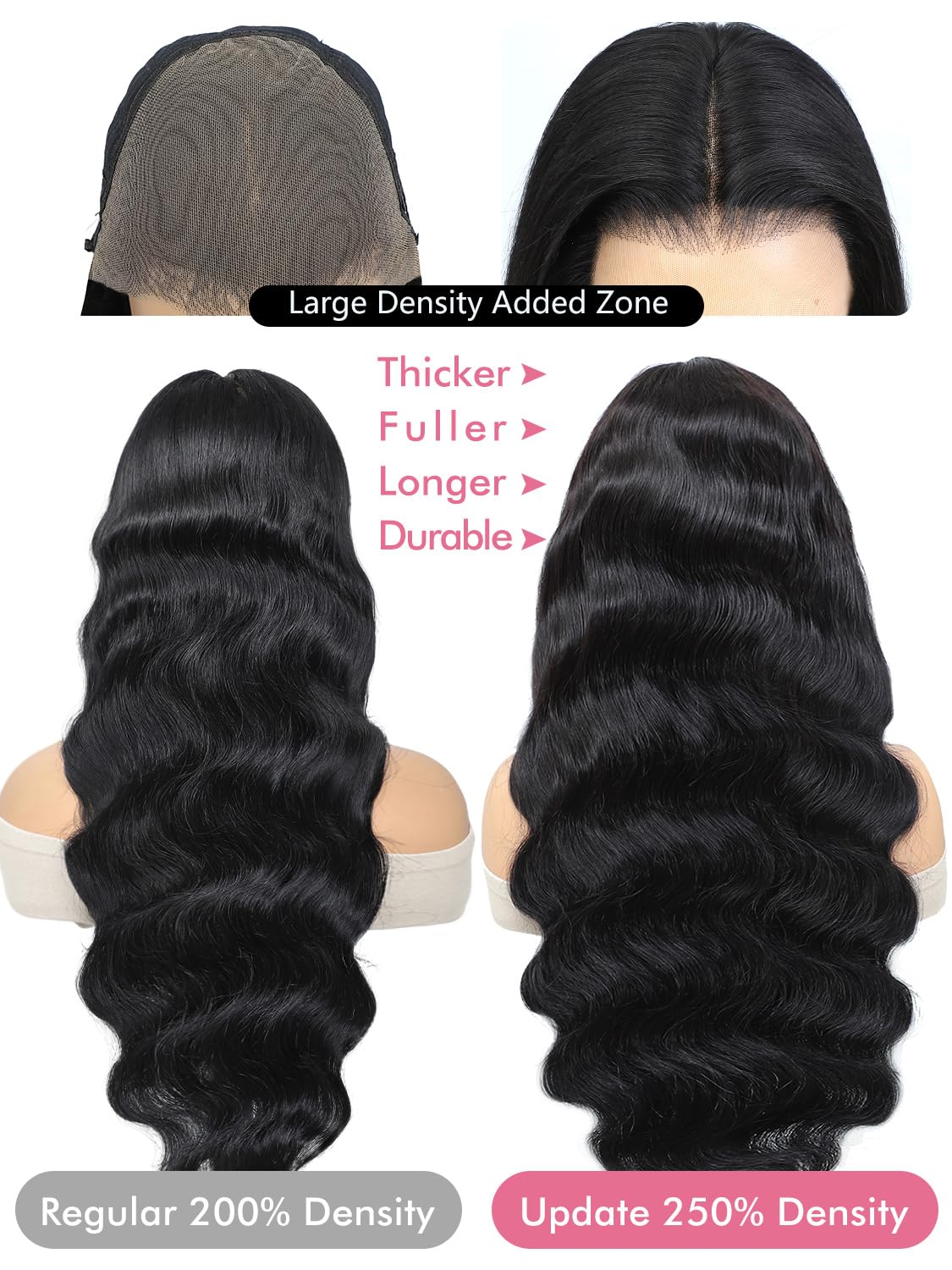 - 【Body Wave Lace Frontal Wigs Human Hair】--15A 100% Real Virgin Human Hair , No Shedding,No Tangle.Can Be Dyed And Bleached.Real Hd Transparent Lace Wig, Can Melt Into All Skin Perfectly, Makes The Hairline More Invisible Soft And Durable. Two Density Added Zones On Lace Part Makes It Looks Fuller And In Case Shedding