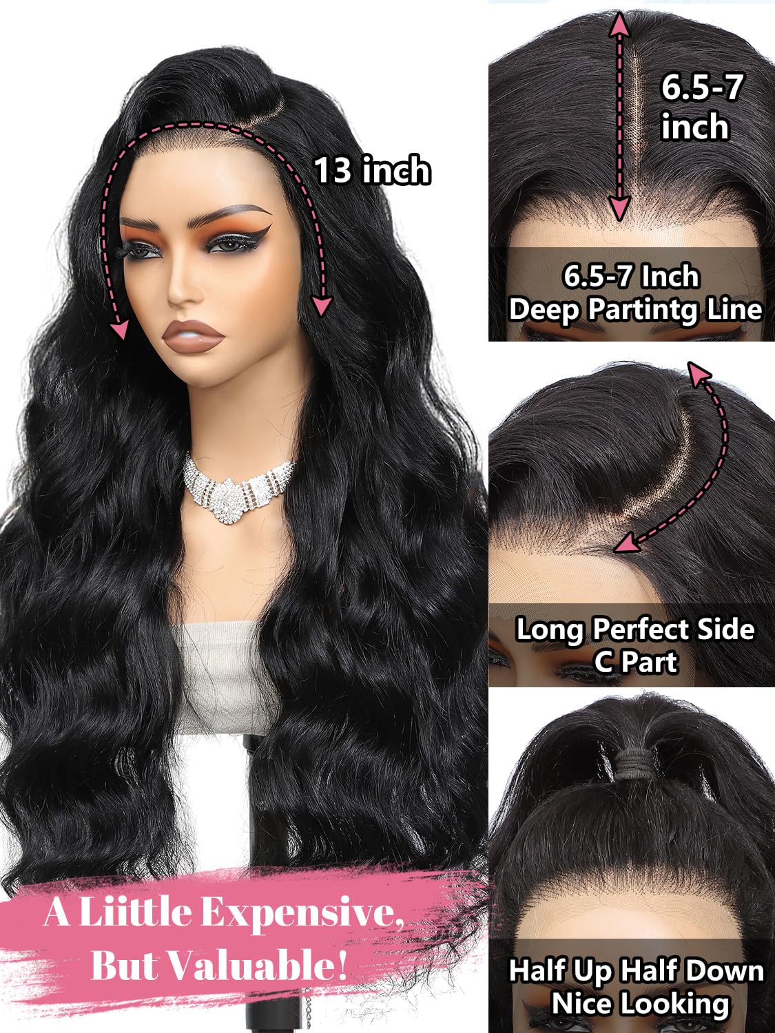 - 【250 Density Hd Lace Front Wigs Human Hair】---250% High Density Lace Wig, 6.5-7inch Deep Parting For Full Frontal Wigs,Also Larger Lace Square At The Side, Allow To Do Lots Of Different Hairstyle, Can Do Any Part Design. No Weft Seen When Parting, Pre Plucked With Baby Hair, Long Natural Hairline