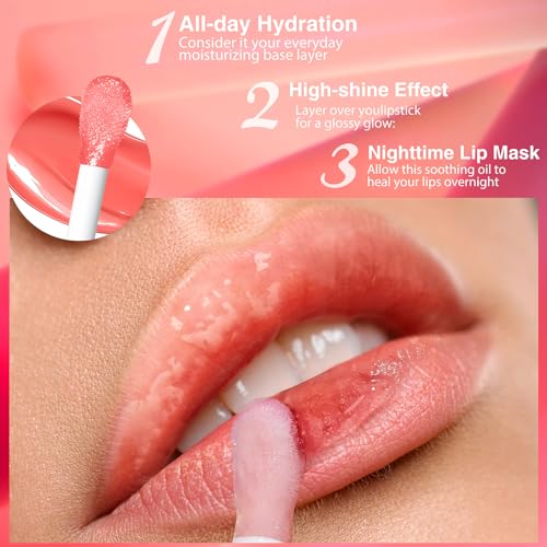 - Big brush head glow oil nourishes the water and brightens the glass lips effect, deeply nourishes lips, long-lasting moisturizing, helps protect against external stress and dry lips, a swipe of hydration will instantly make your lips more sexy.